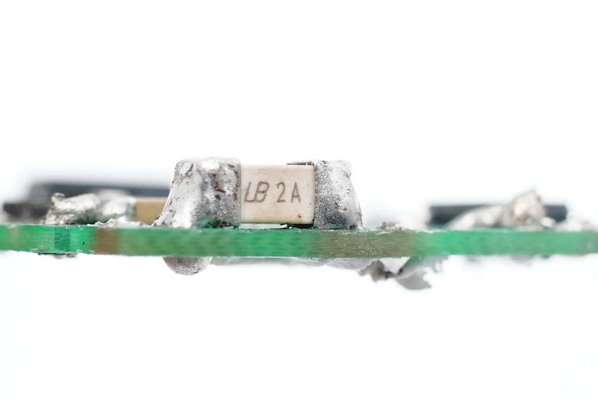 蓝宝保险丝特写,额定电流2A。