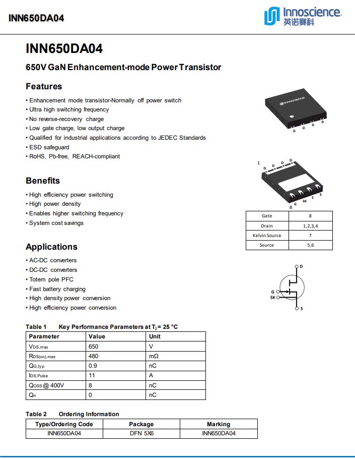 英诺赛科INN650DA04资料信息。