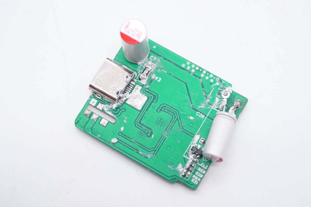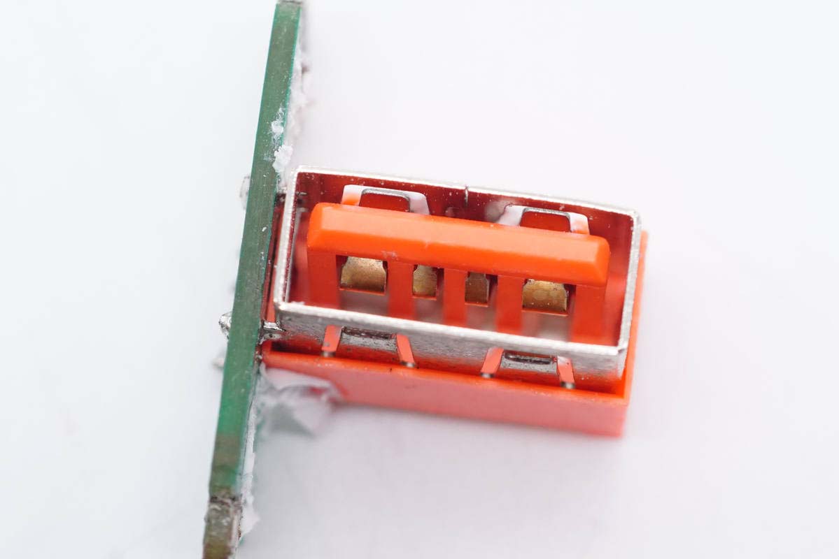 输出端一览,两个USB母座分别焊接在两块小板上。