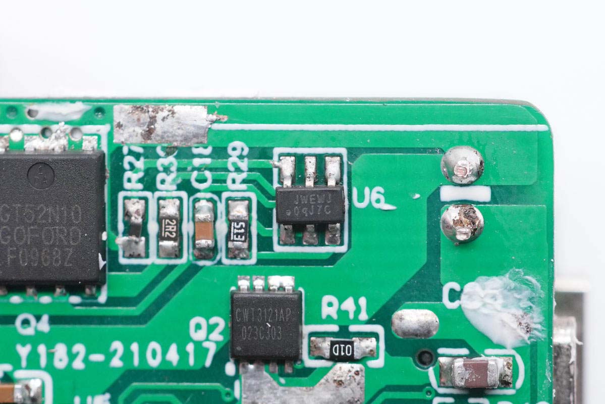 输出VBUS开关管特写,丝印CWT3121AP。