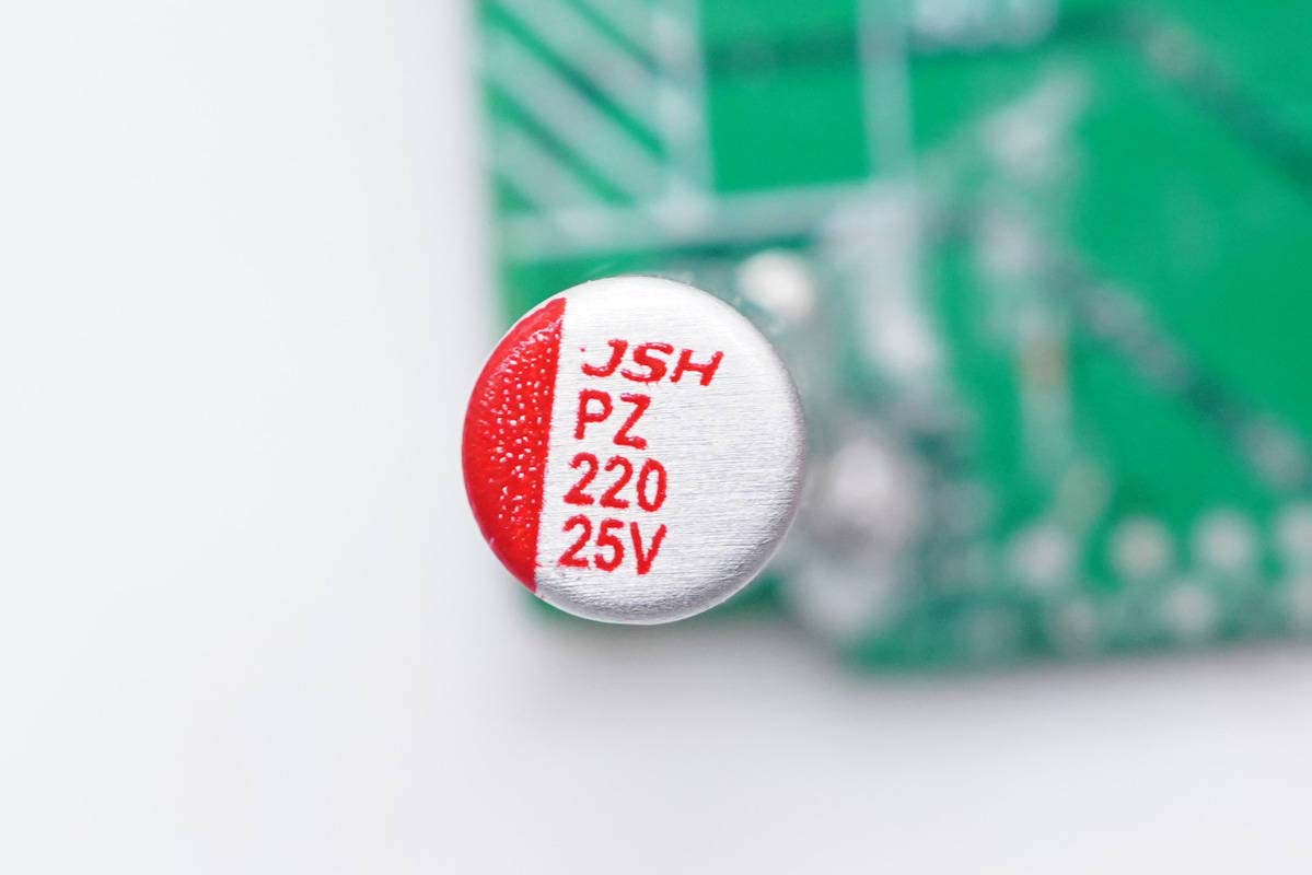 输出滤波固态电容来自JSH益阳万京源,规格为25V 220μF。