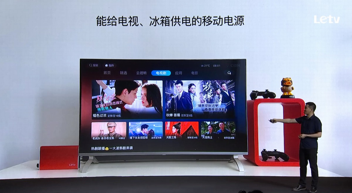 2021年5月18日乐视举办智能生态发布会,前期预热时乐视使用了贾跃亭的剪影宣传海报,但贾跃亭并未在发布会上现身,成为乐视为了这次发布会增加曝光度的手段。乐视发布会上一口气发布了近六十款智能生态新品,其中包含两款充电配件产品,他们是乐视LE-DY系列移动电源。
