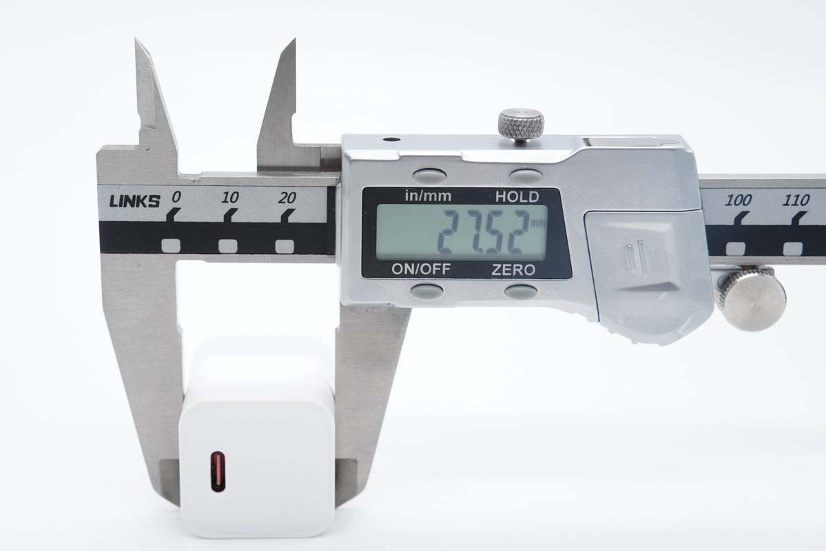 使用游标卡尺实测充电器机身高度为29.95mm。