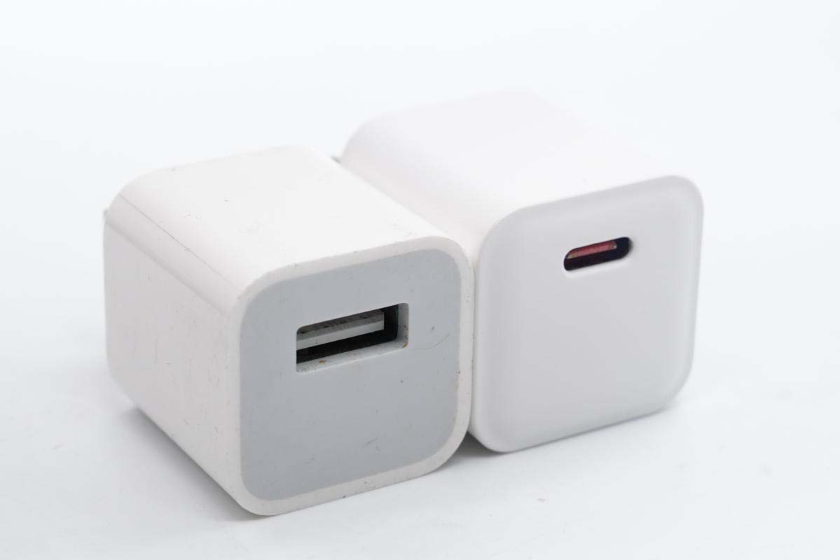 和苹果5W充电器对比,两者体积相当。