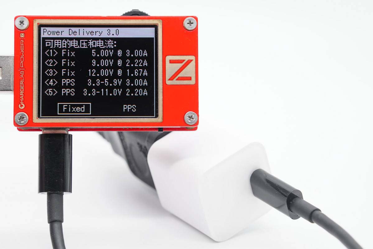 使用ChargerLAB POWER-Z KT002测得USB-C口支持Apple 2.4A、Samsung 5V2A、DCP协议,以及QC2.0/3.0、AFC、SCP、PE2.0、PD3.0和PPS快充协议。