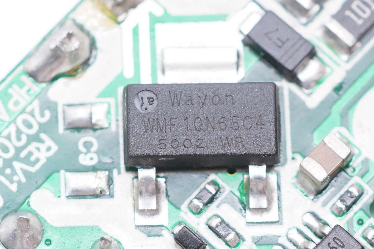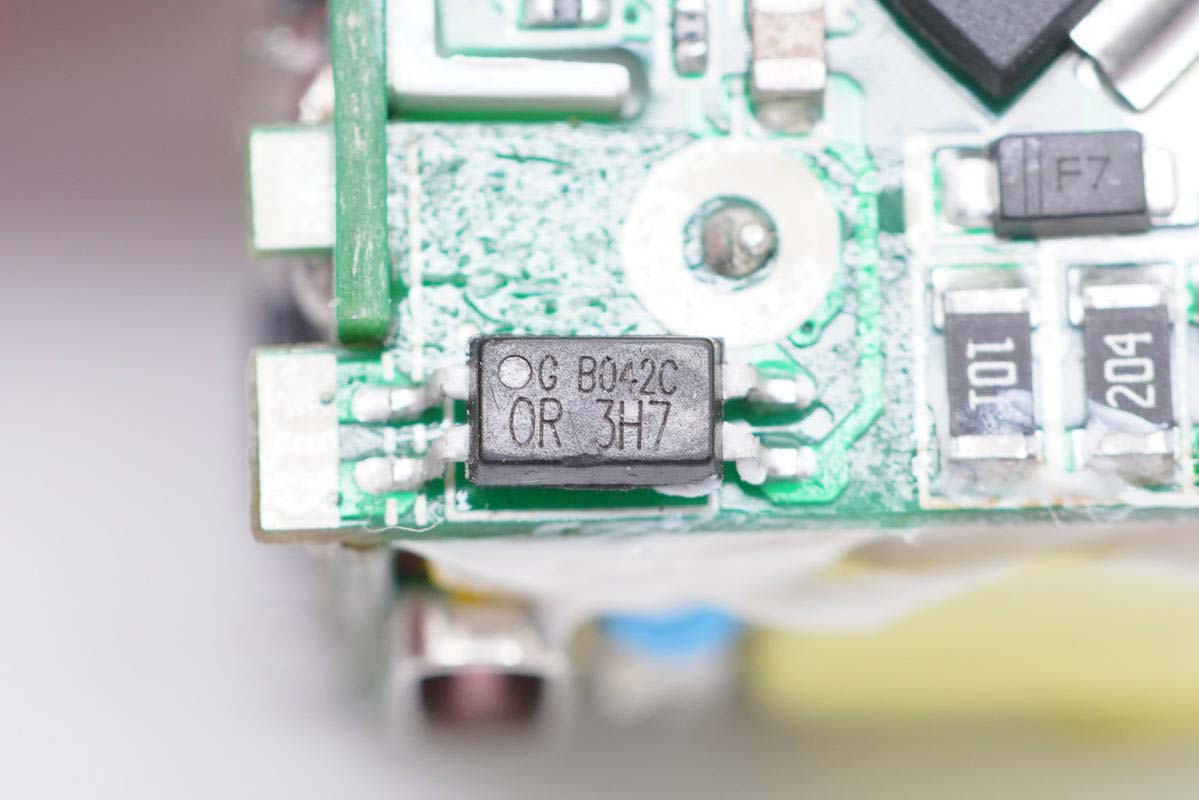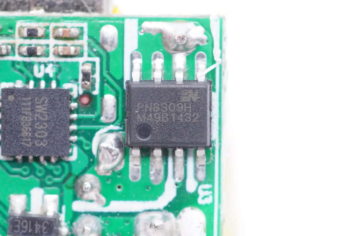 初级小板的背面还有主控芯片、高压开关管以及光耦。