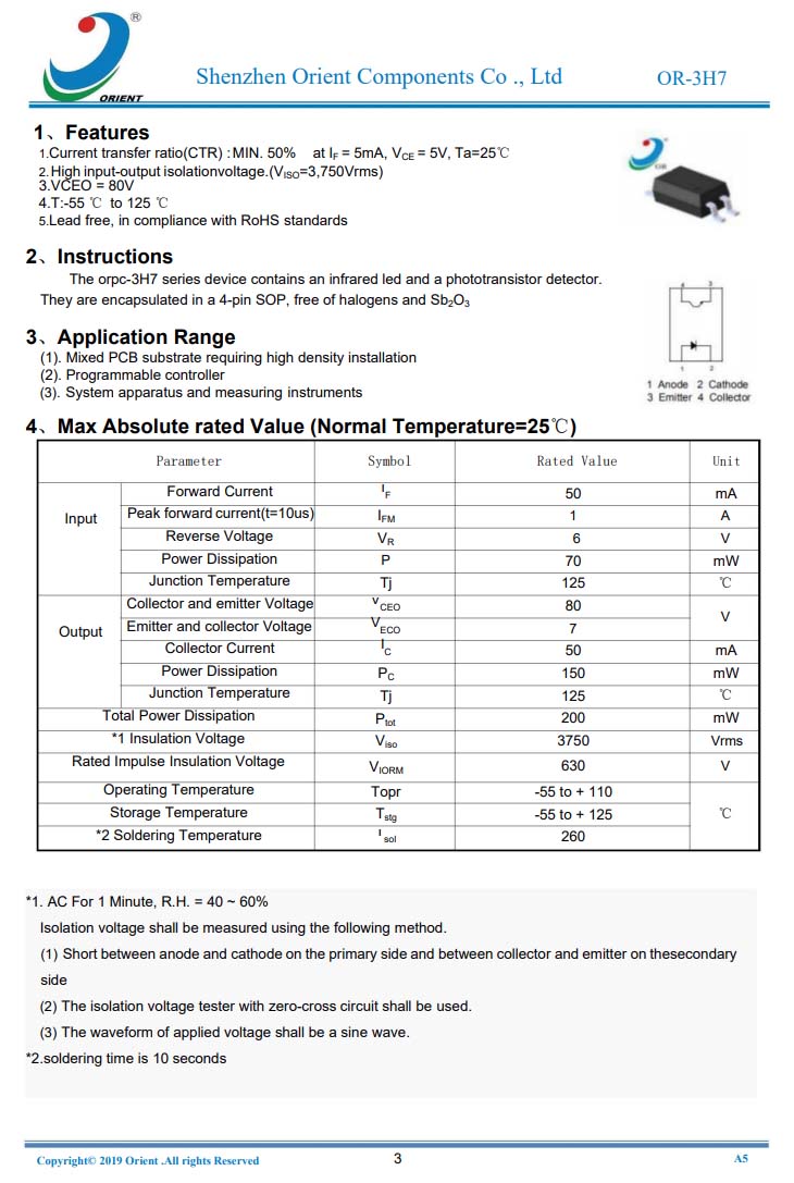 奥伦德 OR-3H7光耦 资料信息。