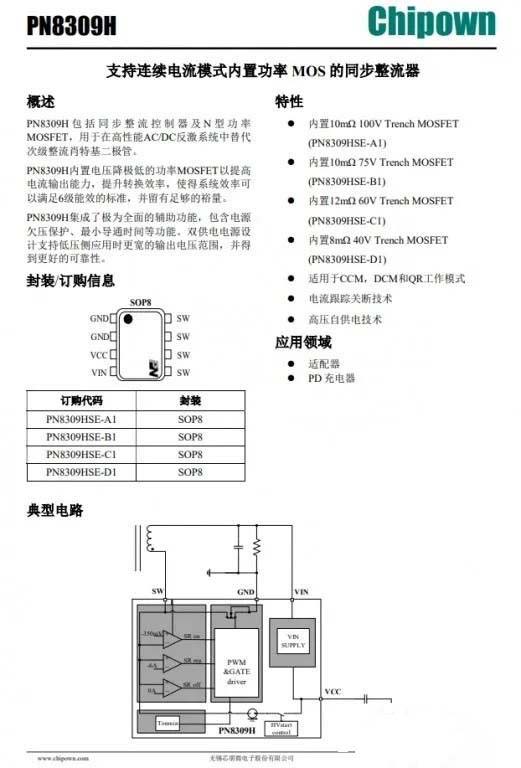 芯朋微PN8309H资料信息。