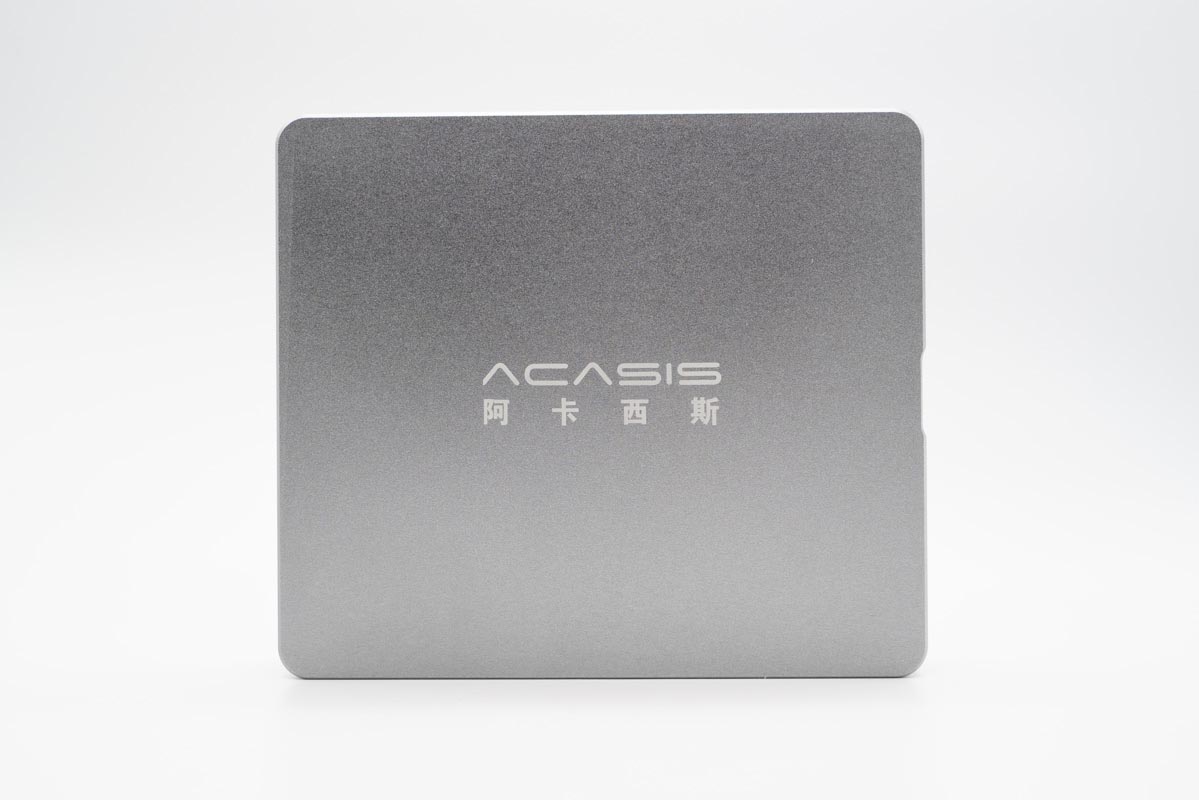 硬盘盒拓展坞的正面,正中间印制着阿卡西斯的品牌Logo。