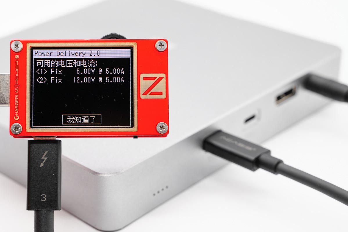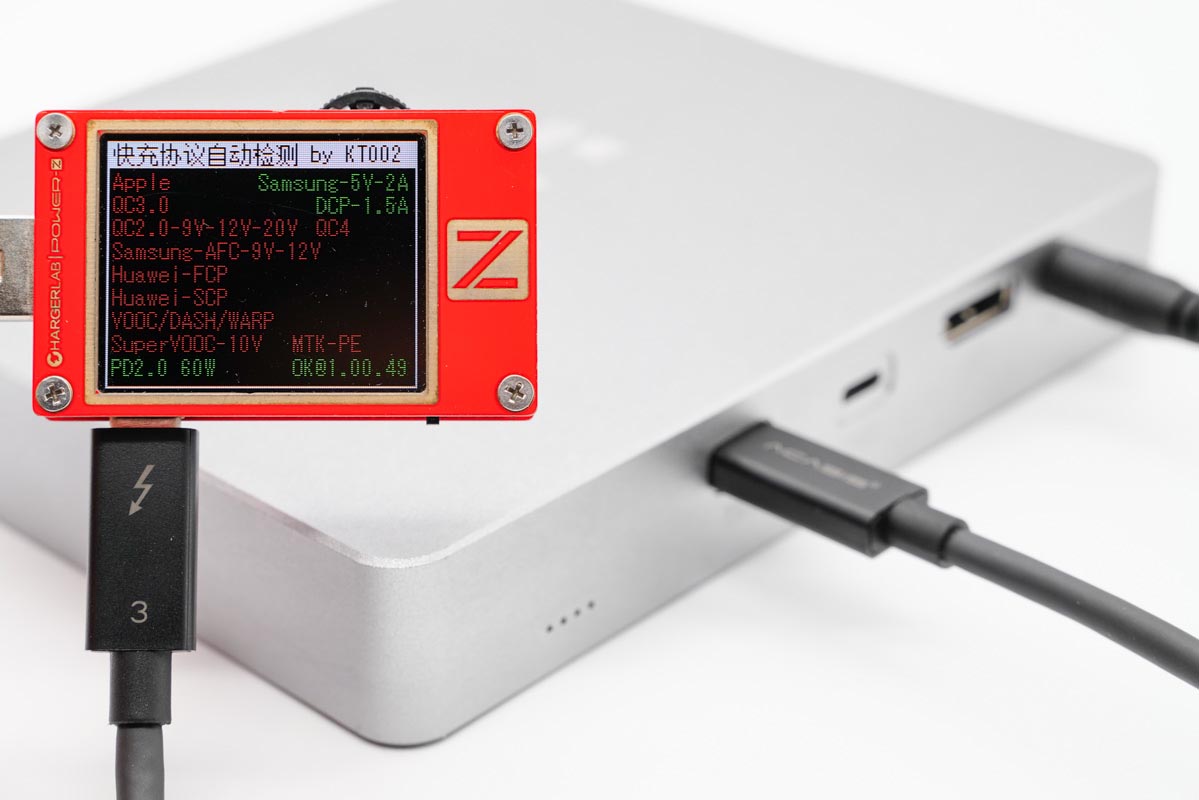 使用ChargerLAB的POWER-Z KT002读取附带雷电3接口的快充协议,实测支持PD快充。