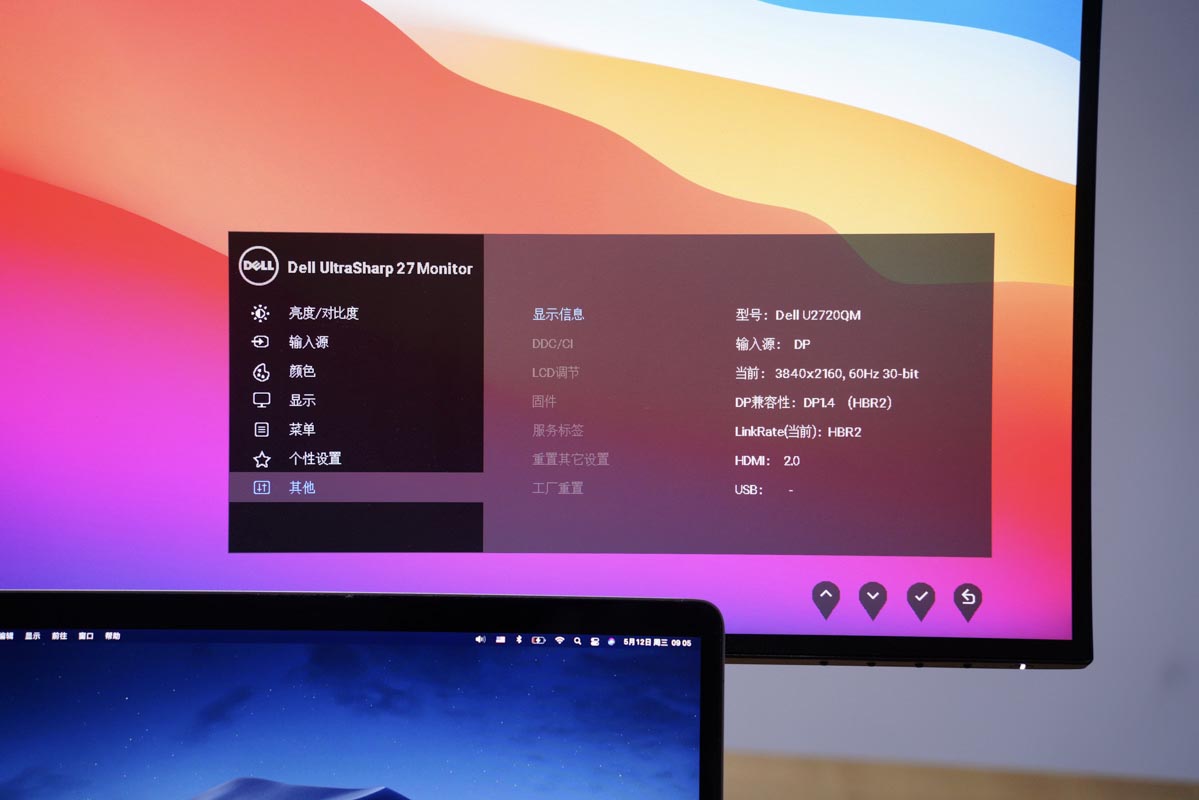 在外接显示器的同时调出显示器的参数信息,当前显示器的分辨率为3840*2160,60Hz 30-bit。同样可以支持4K显示器拓展。