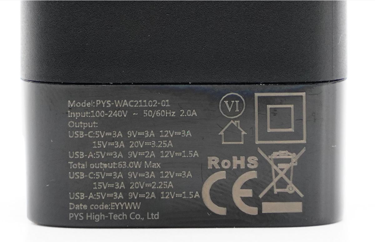 2021年PYS鹏元晟针对iPhone 12系列机型推出了磁吸无线充电器、支持多国转换插脚的20W快充头等产品,来为庞大的iPhone 12用户群体提供快充支持。近日充电头网了解到,PYS鹏元晟在PD快充头领域再度发力,此次推出的新品是面对iPad和笔电等大型用电设备,它就是PYS鹏元晟65W双口充电器。