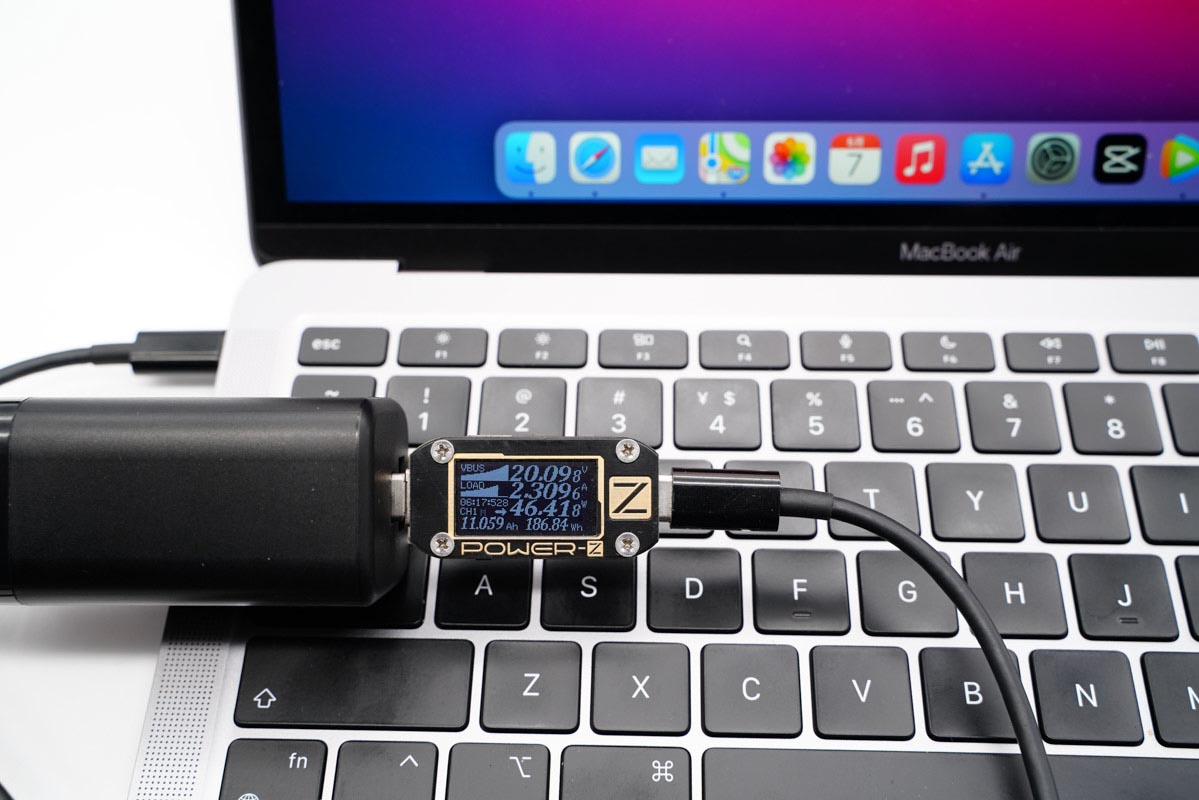充电头网最新入手的这台MacBook Air M1配备了USB4接口,支持USB PD快速充电,充电器的USB-C接口可以提供20V的高压快充,功率在46W以上。