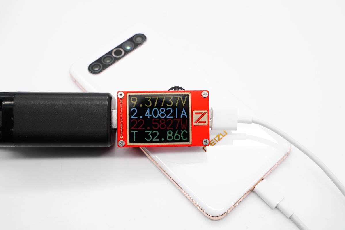 USB-A为魅族17 Pro充电时可以提供22W以上的快充功率。