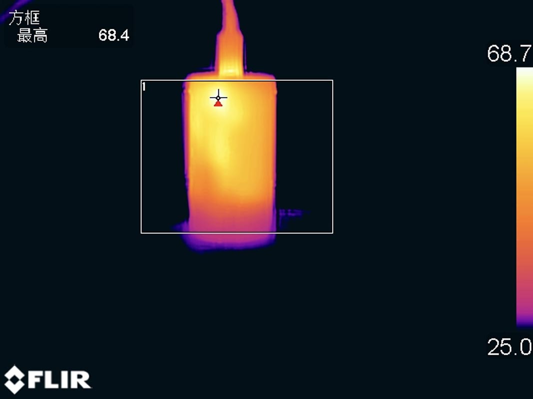 以65W的功率持续输出1小时后采集到充电器表面的最高温度为68.4℃。