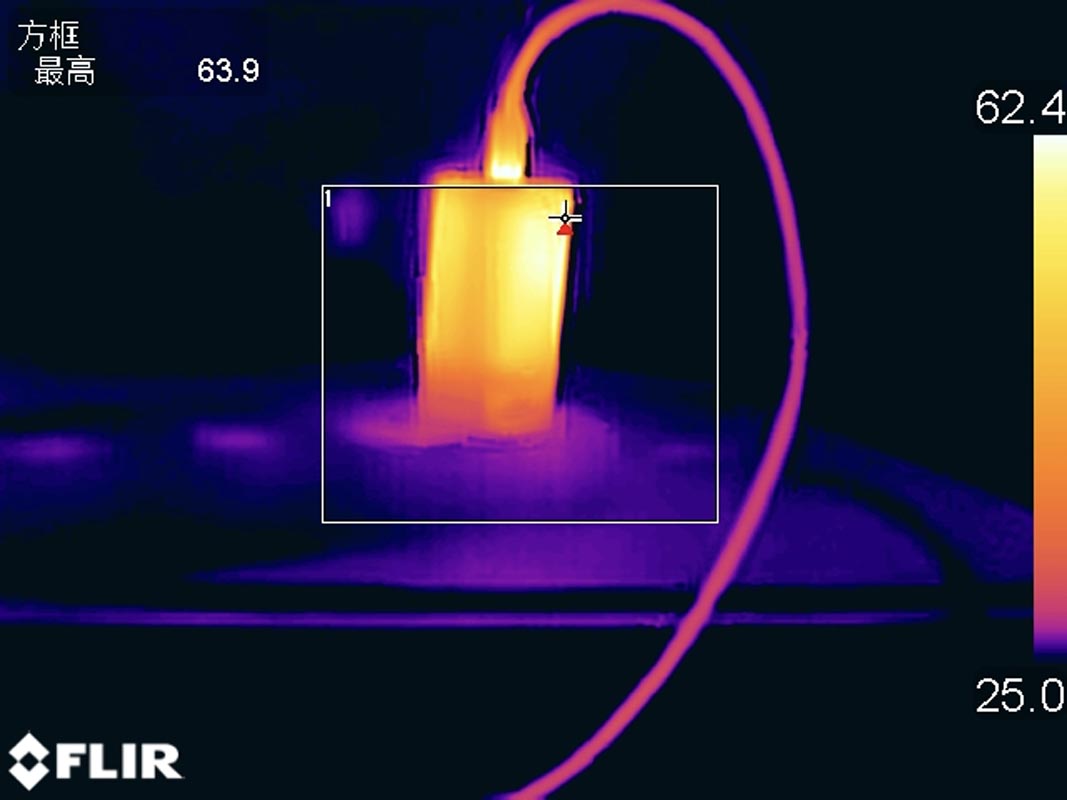 翻转至另一侧,充电器表面最高温度为 63.9℃。