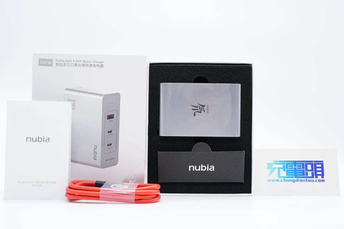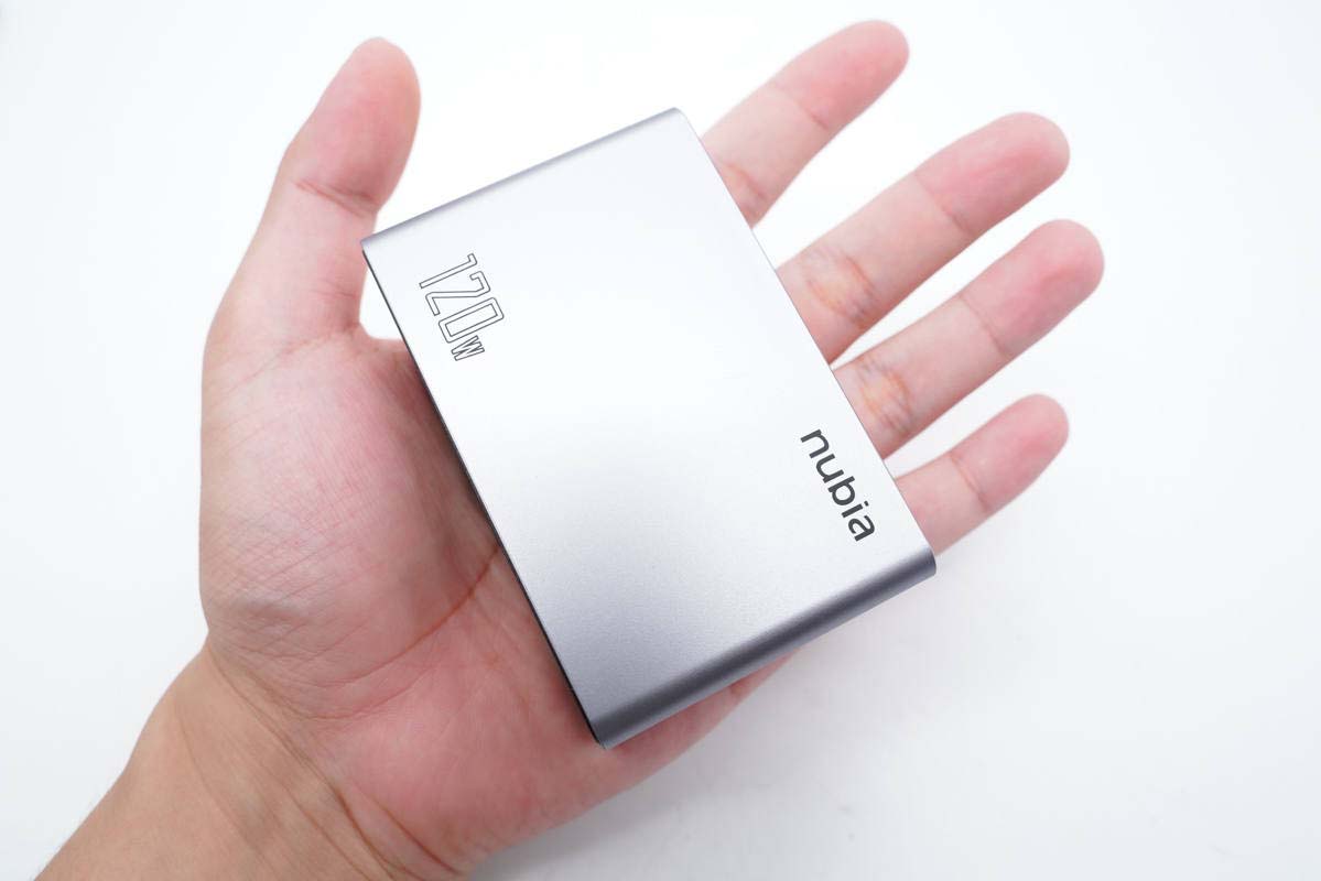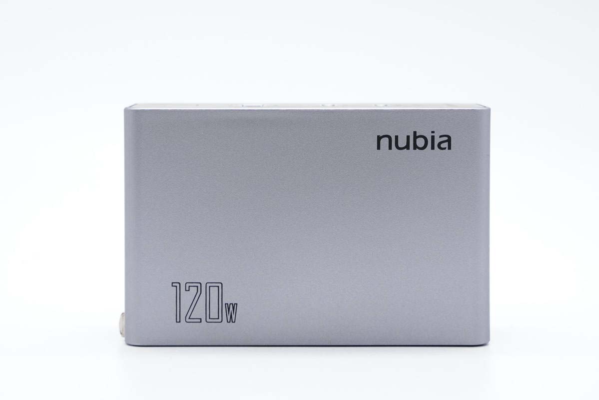 机身一面对角处分别是nubia品牌和120W功率标识。