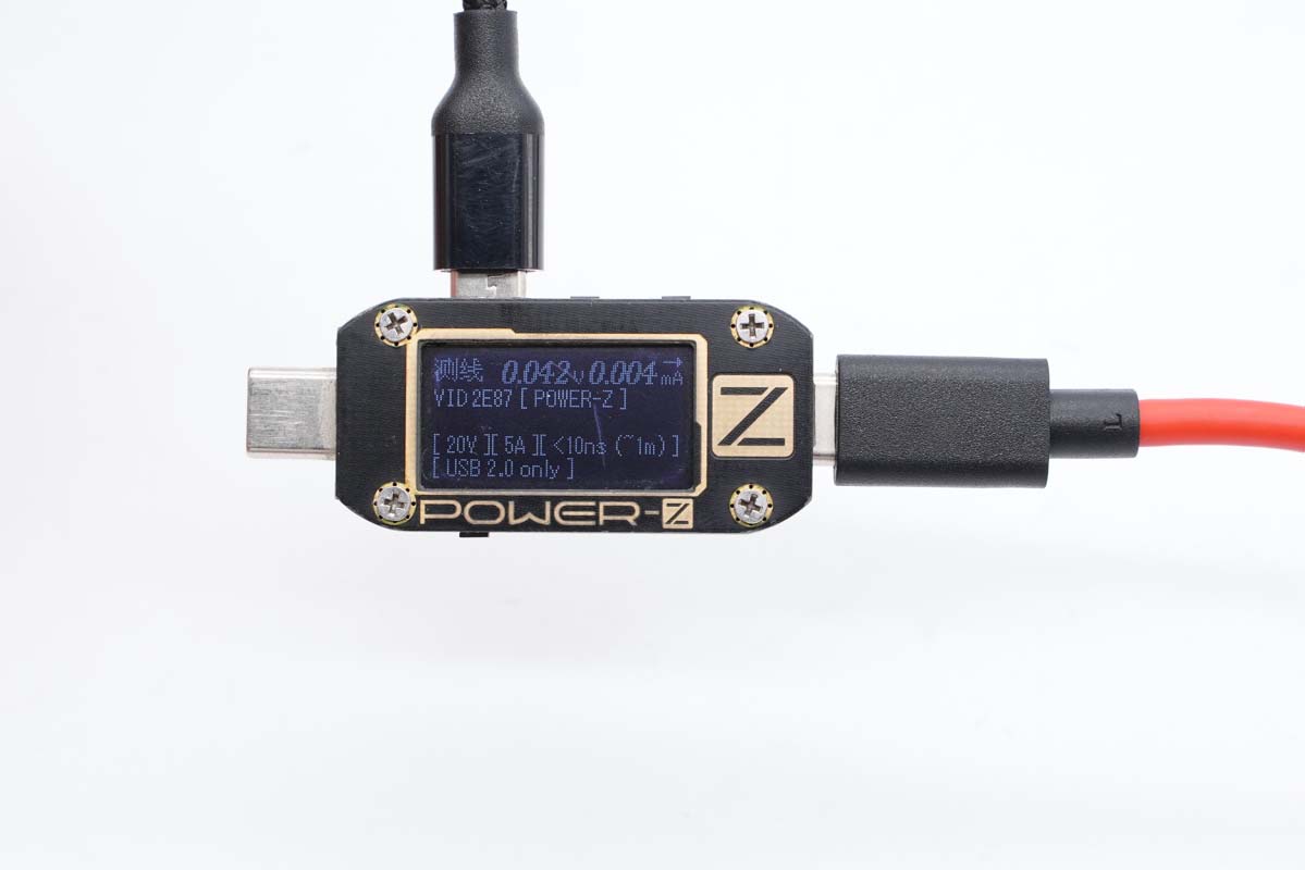 另外使用ChargerLAB POWER-Z KM001C检测,显示该线缆带有E-Marker芯片,电力传输能力为20V5A,数据传输能力为USB 2.0。