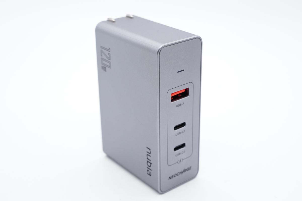 nubia努比亚120W氮化镓快充充电器作为氘锋系列新品,机身采用经典银灰色配色,还有“氘”字、LED灯等元素,设计风格不变。充电器配备折叠插脚和2C1A三个接口,携带方便且支持多台设备同时快充,外带一个就够了。同时产品支持QC、AFC、FCP、SCP、PE2.0、PD3.0、PPS等多个市面主流快充协议,具备5A PPS电压档位,整体的兼容性很好,满足各大品牌笔电、平板和手机快充需求。