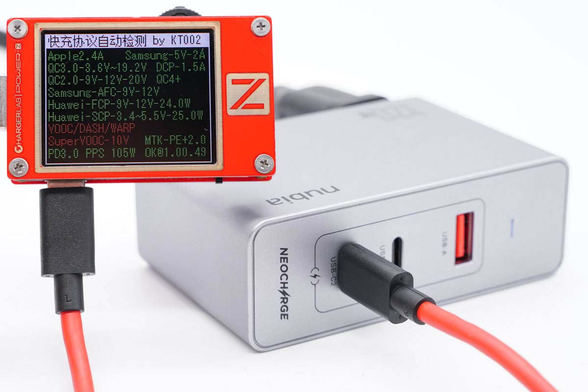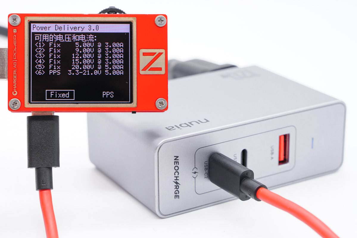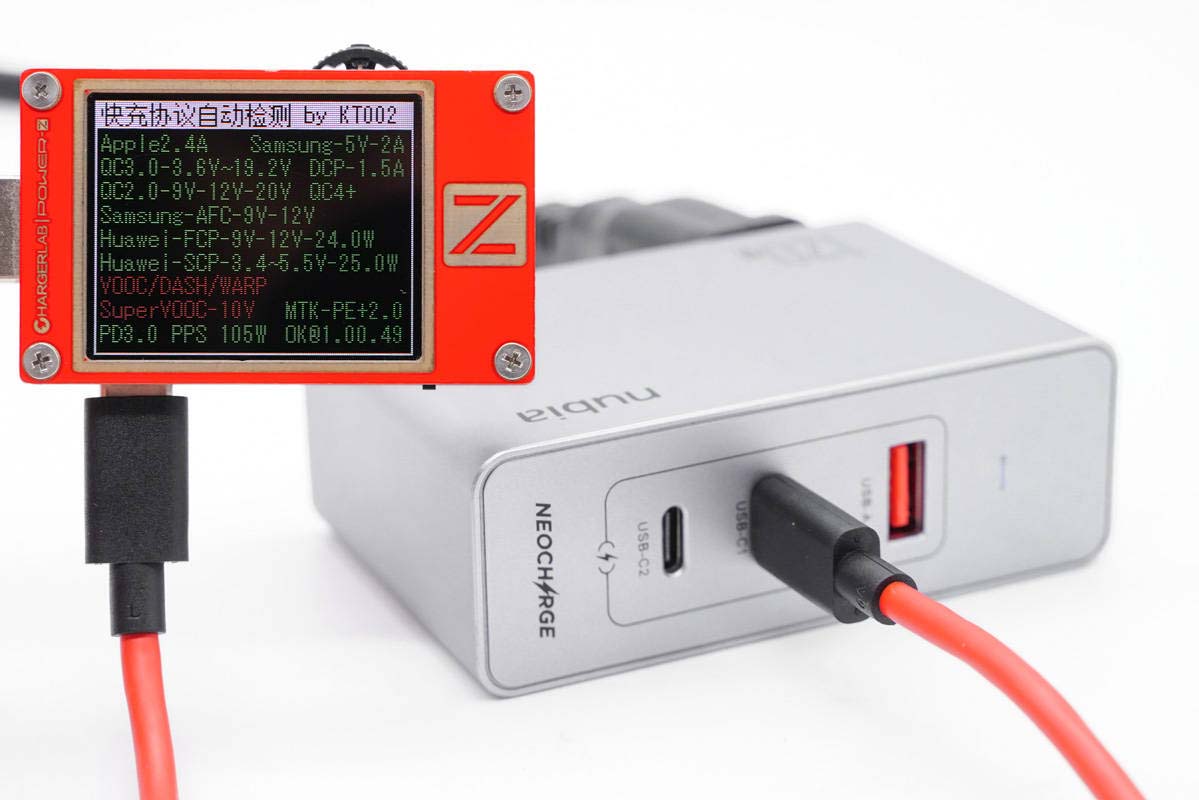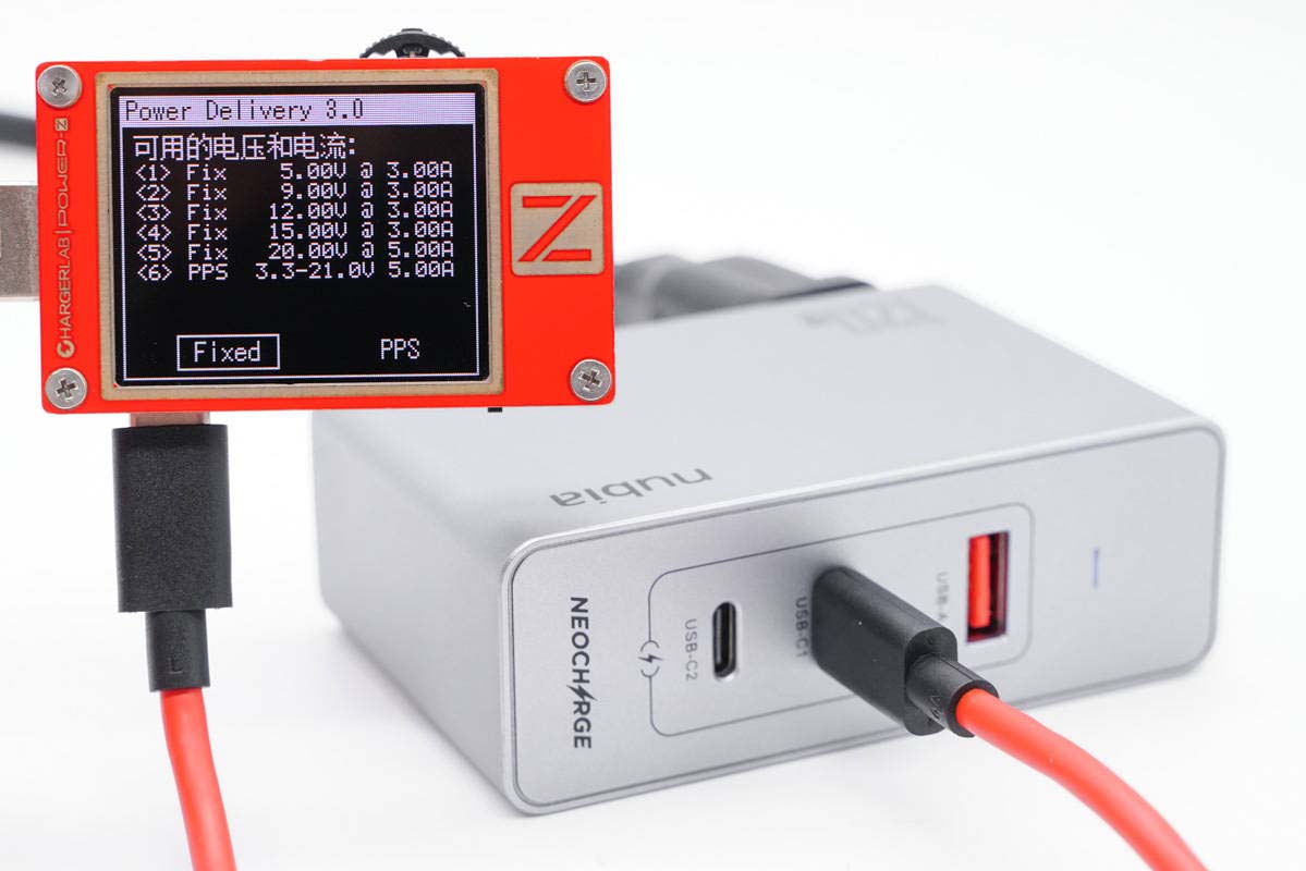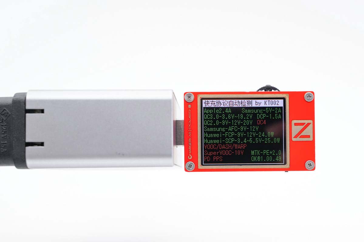 使用ChargerLAB POWER-Z KT002测得USB-C1口支持Apple 2.4A、Samsung 5V2A、DCP协议,以及QC2.0/3.0、AFC、FCP、SCP、PE2.0、PD3.0、PPS多个快充协议。