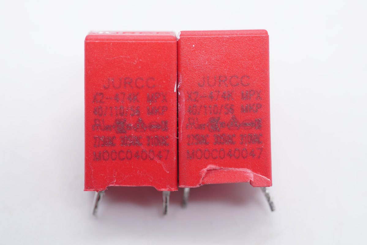 两颗红色X电容来自JURCC捷威电子,容量0.47μF。