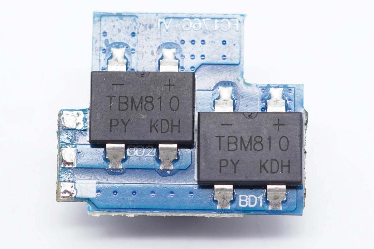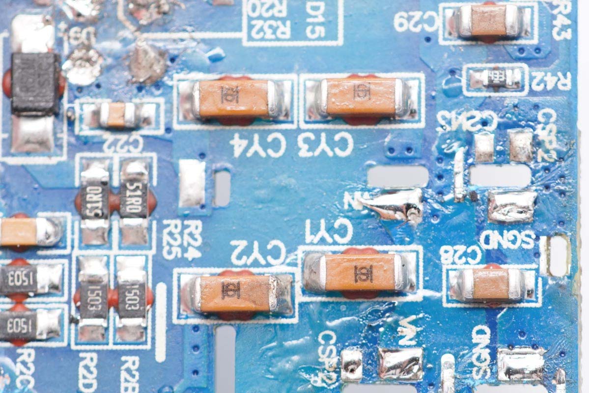 四颗贴片Y电容特写,两颗串联提高安全性。