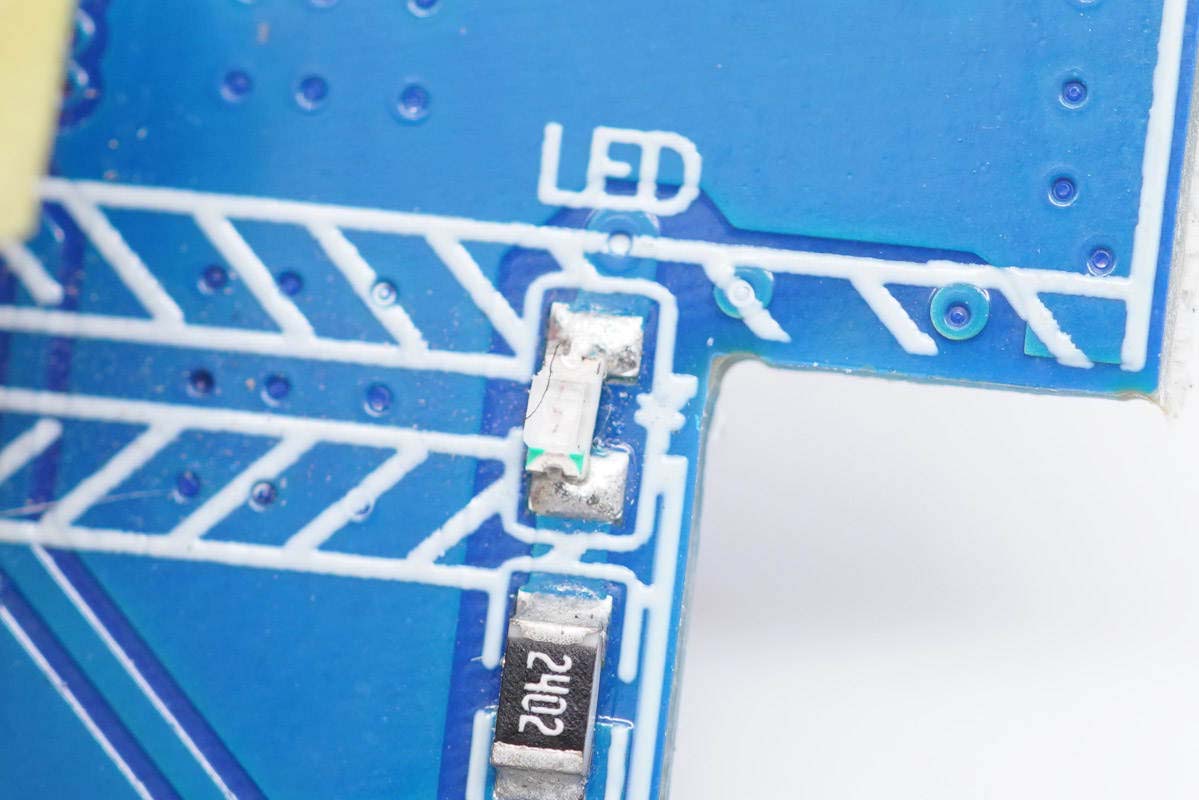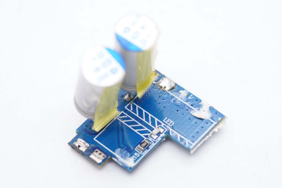 小板上还有一颗LED指示灯,两颗固态电容均粘贴绝缘胶带和小板进行隔离。