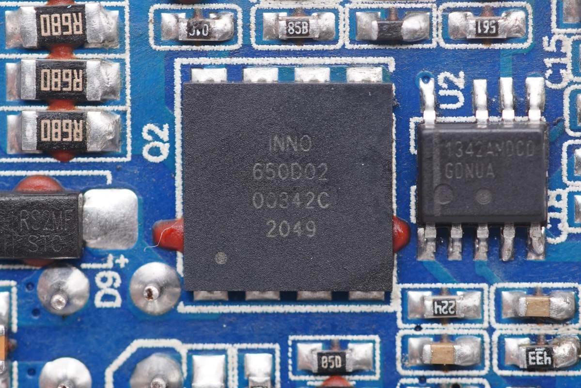 高压开关管也是采用的英诺赛科INN650D02氮化镓功率芯片。