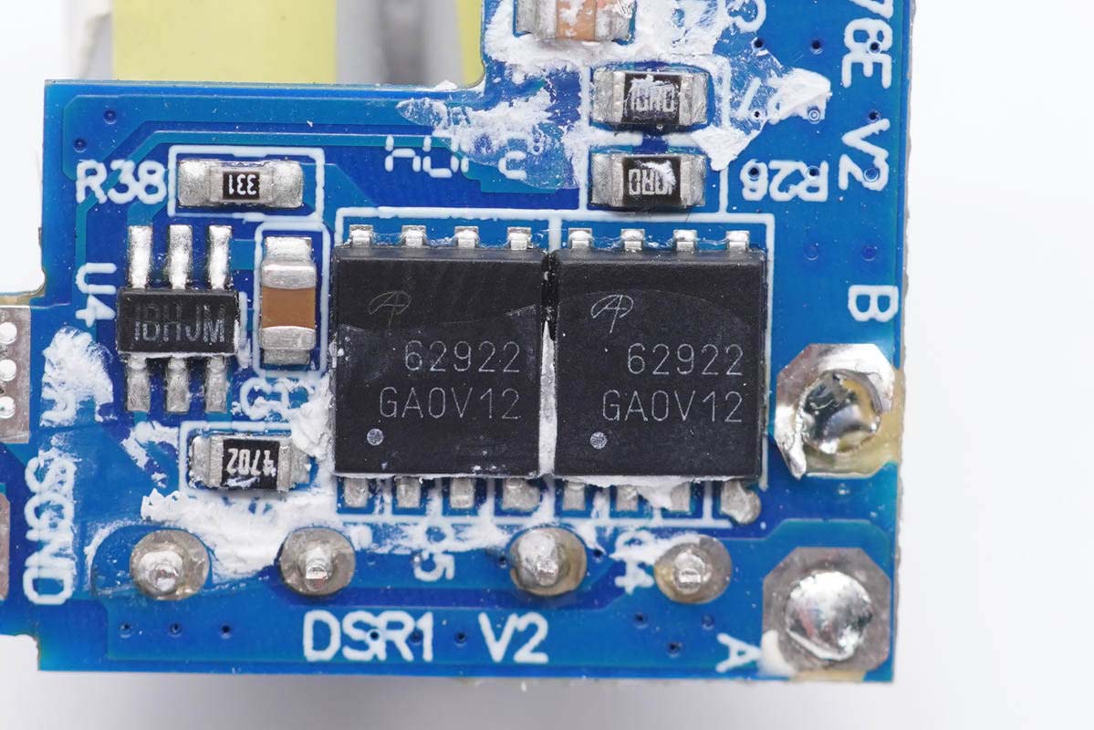 两颗同步整流MOS管均为AOS万代的AONS62922,NMOS,耐压120V,两颗并联。