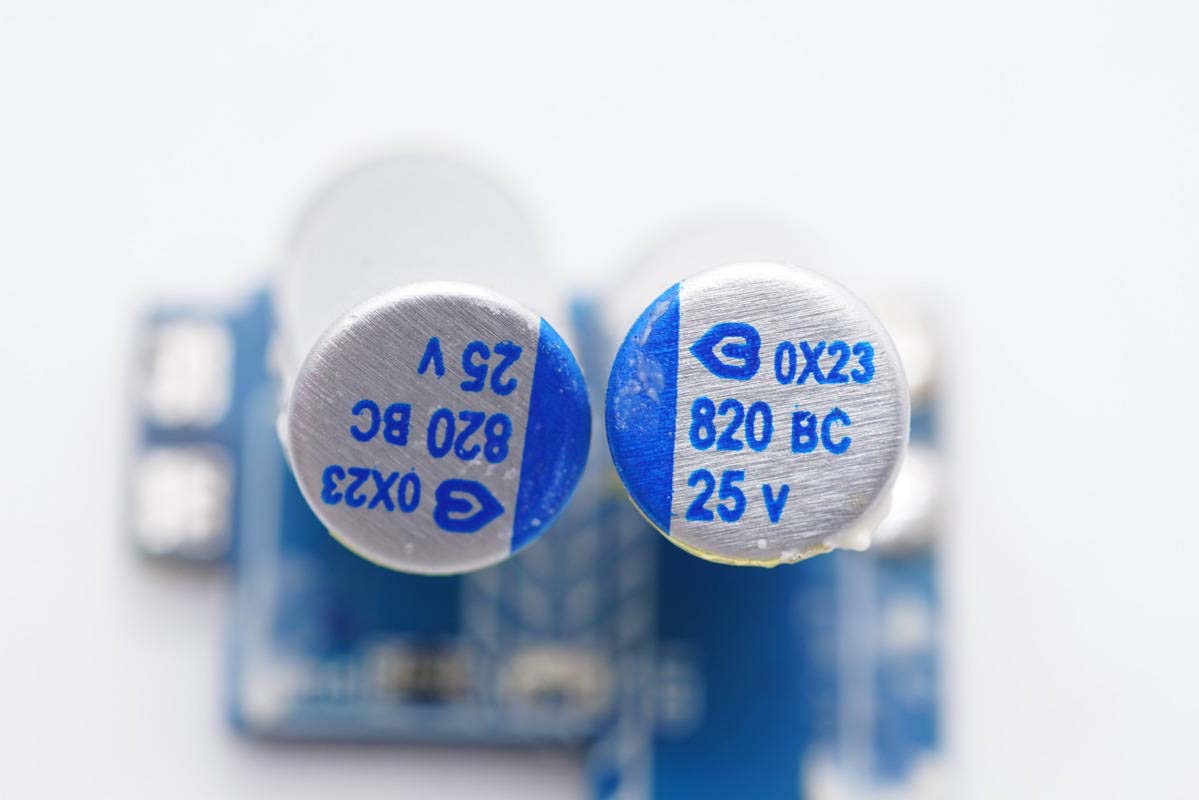 输出滤波固态电容均来自绿宝石,规格也都是25V 820μF。