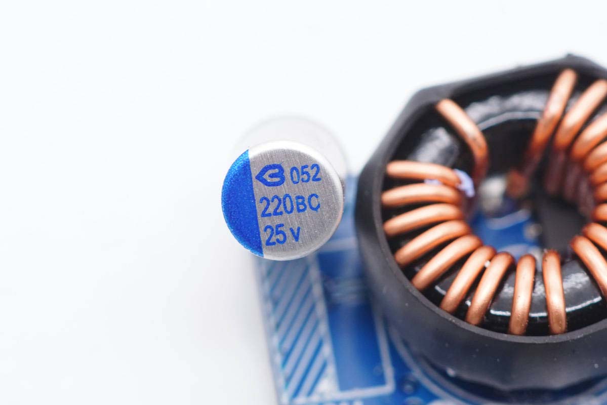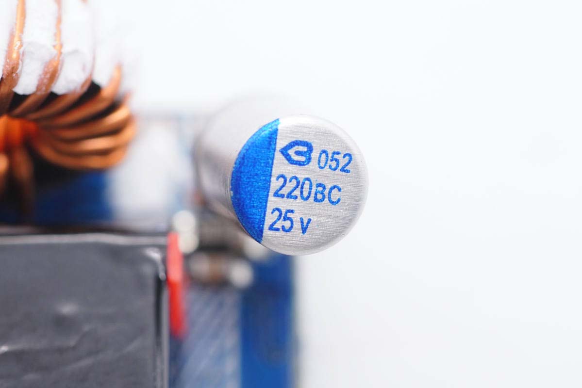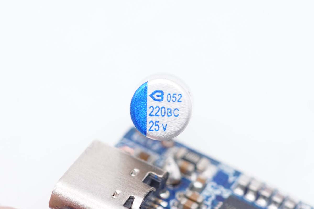 输出滤波固态电容来自绿宝石,规格为25V 220μF。