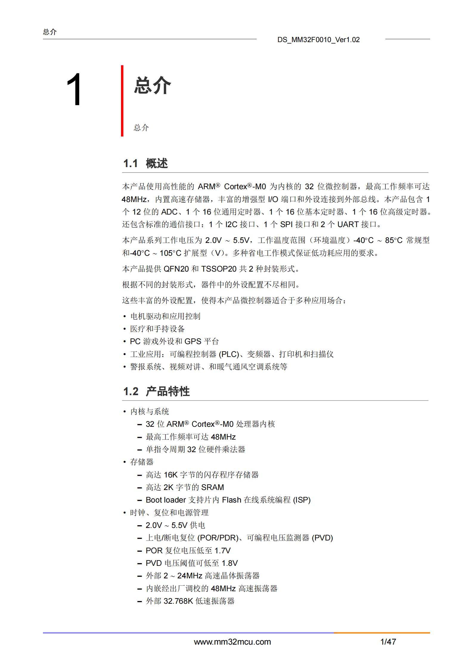 灵动微MM32F0010 32位单片机,内部集成Cortex-M0内核,最高工作频率达48MHz,用于端口功率分配。