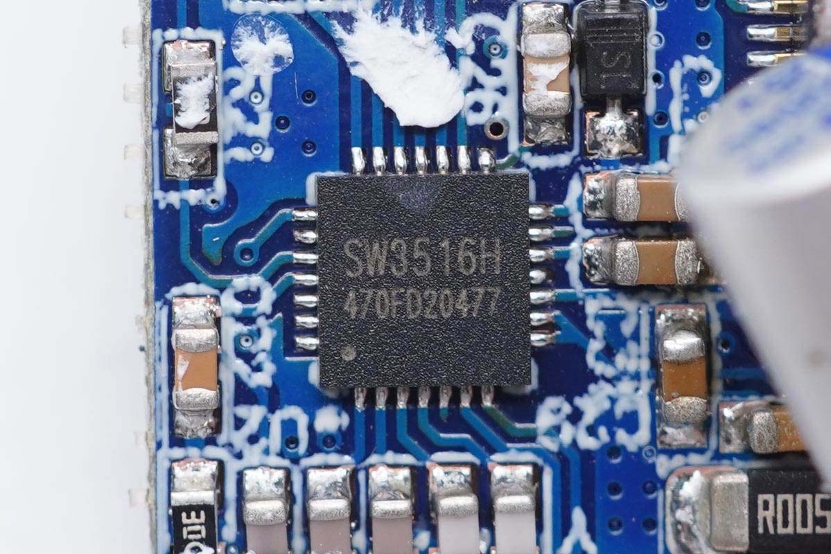 采用智融SW3516H作为USB-A口的降压控制器和协议识别。这是一款高集成度的多快充协议双口充电芯片,支持A+C口任意口快充输出,支持双口独立限流。