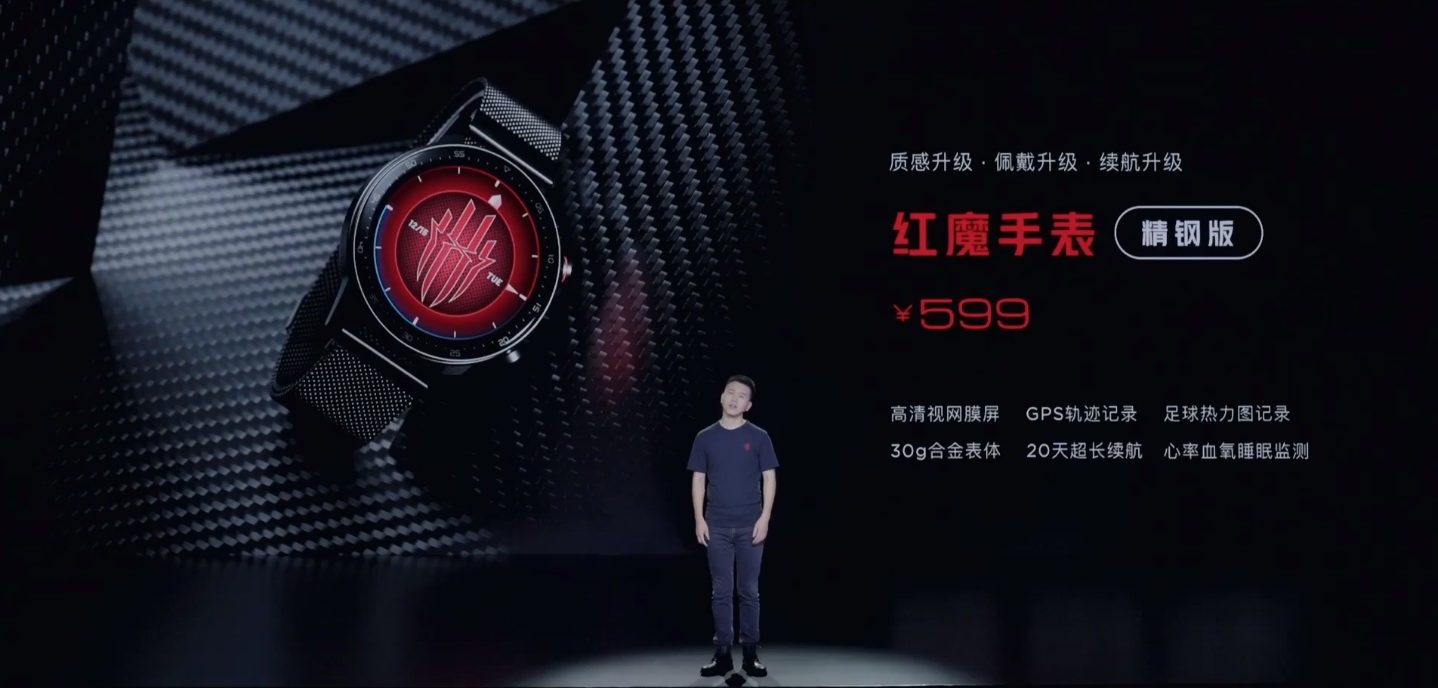 这次发布会还带来了精钢版红魔手表,质感、佩戴、续航全面升级,20天超长续航,加量不加价,售价仍为599元。并且红魔将在6月开启【将运动进行到底】活动,报名的前5000名用户可参与每日万步打卡百日,即全额返现。
