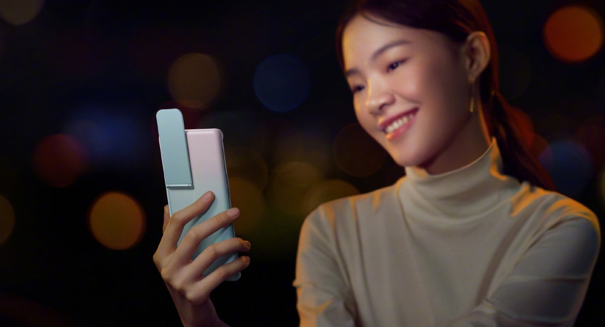 OPPO为Reno 6系列推出了神奇的焕采补光手机壳,除保护手机抗摔外,背部设置了一片多功能翻转结构,翻转90度可以作为手机支撑杆使用,横置看剧轻松自在。翻转180度则会变成自拍补光灯,无需电池即可点亮,让弱光人像自拍更加漂亮。
