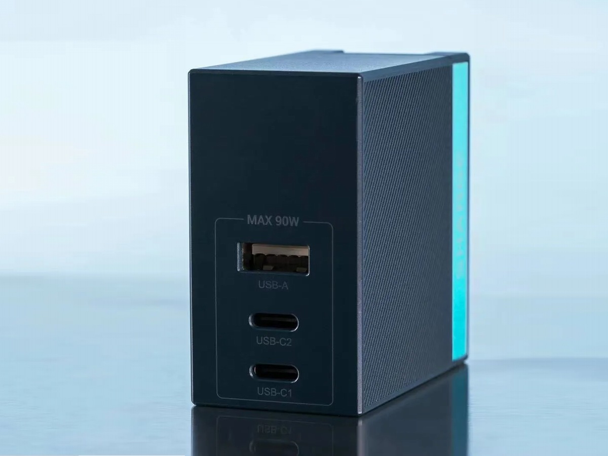市面上绝大部分充电器外观都都采用圆润过渡的边角设计,闪极90W氮化镓充电器外观则是棱角分明,显得十分硬朗,这也是闪极充电器的家族ID设计,“能尖锐何必圆滑?”。