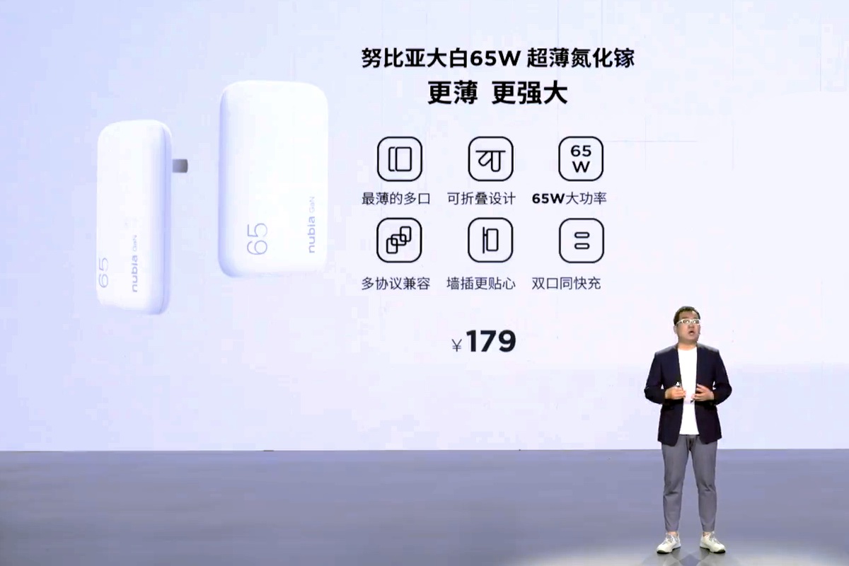 2021年5月20日,努比亚举行“星影相随”主题新品发布,发布了Z系列最新一代影像旗舰——努比亚Z30 Pro。除旗舰手机外,努比亚还带来了一系列充电配件新品,其中一款是业界首款多口扁平化的65W氮化镓充电器——努比亚大白65W超薄氮化镓充电器。