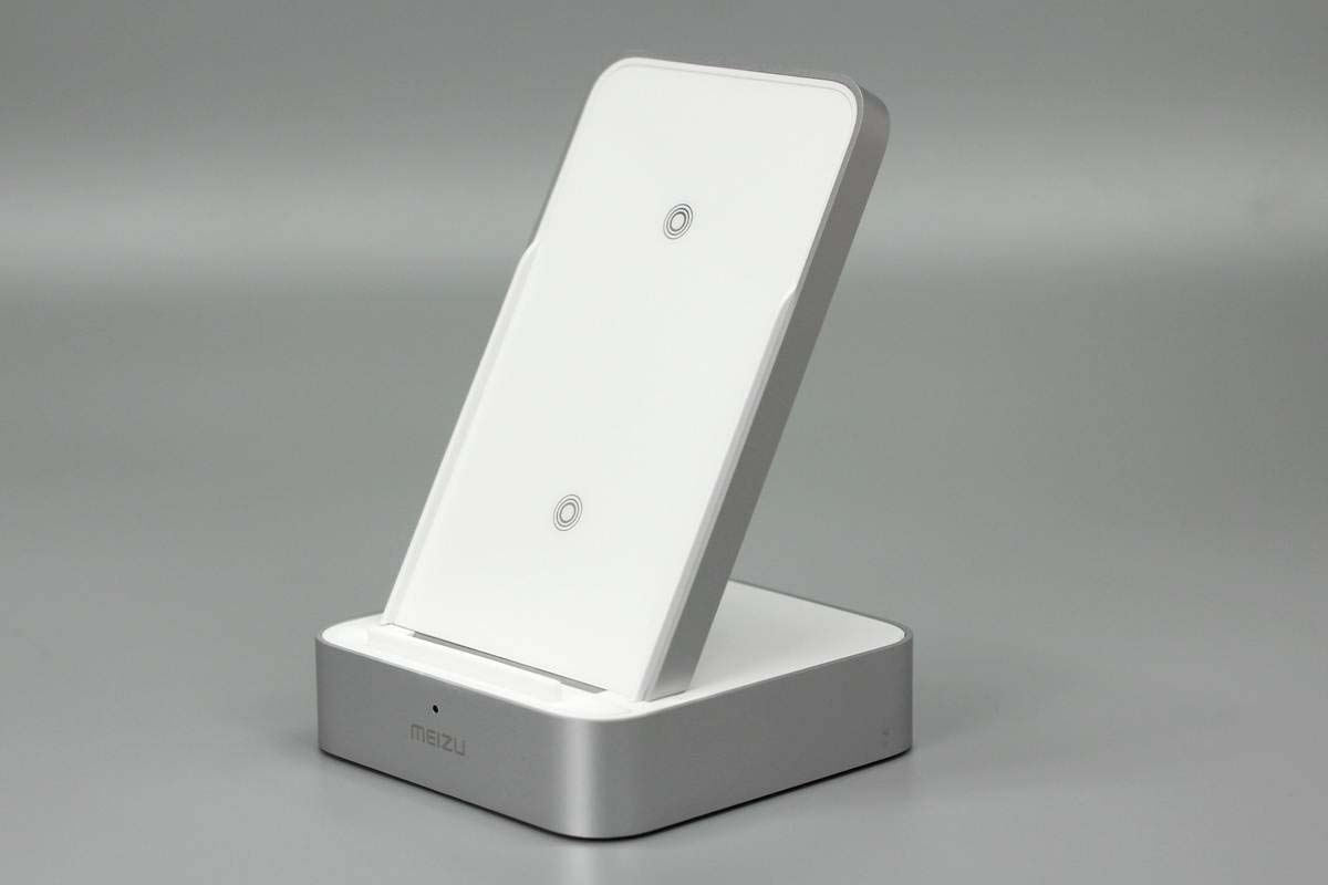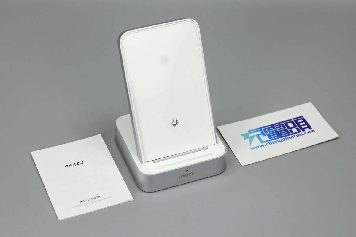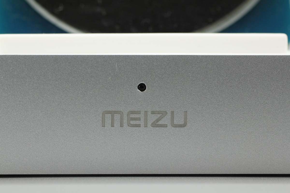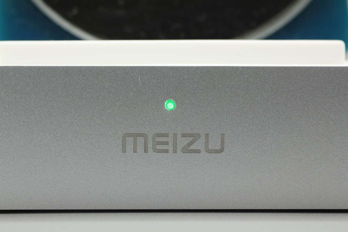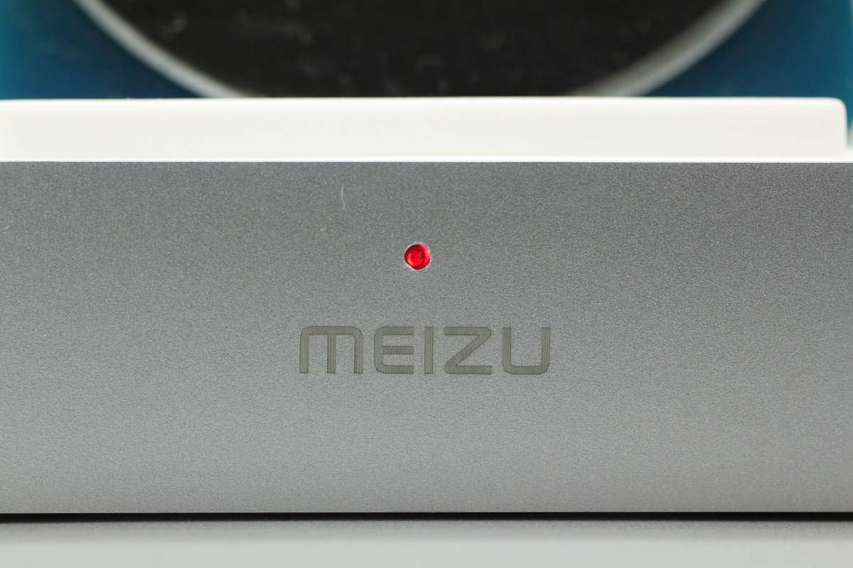 底座前端印有MEIZU品牌,并设有一颗LED充电指示灯。