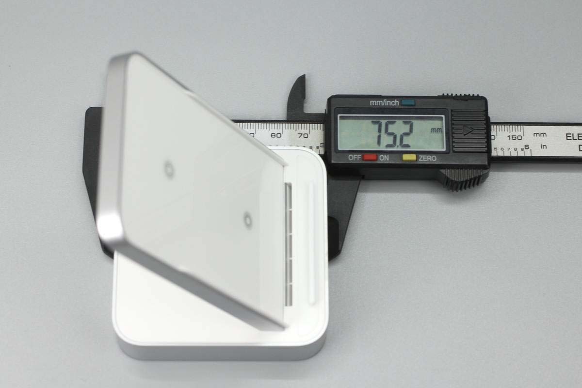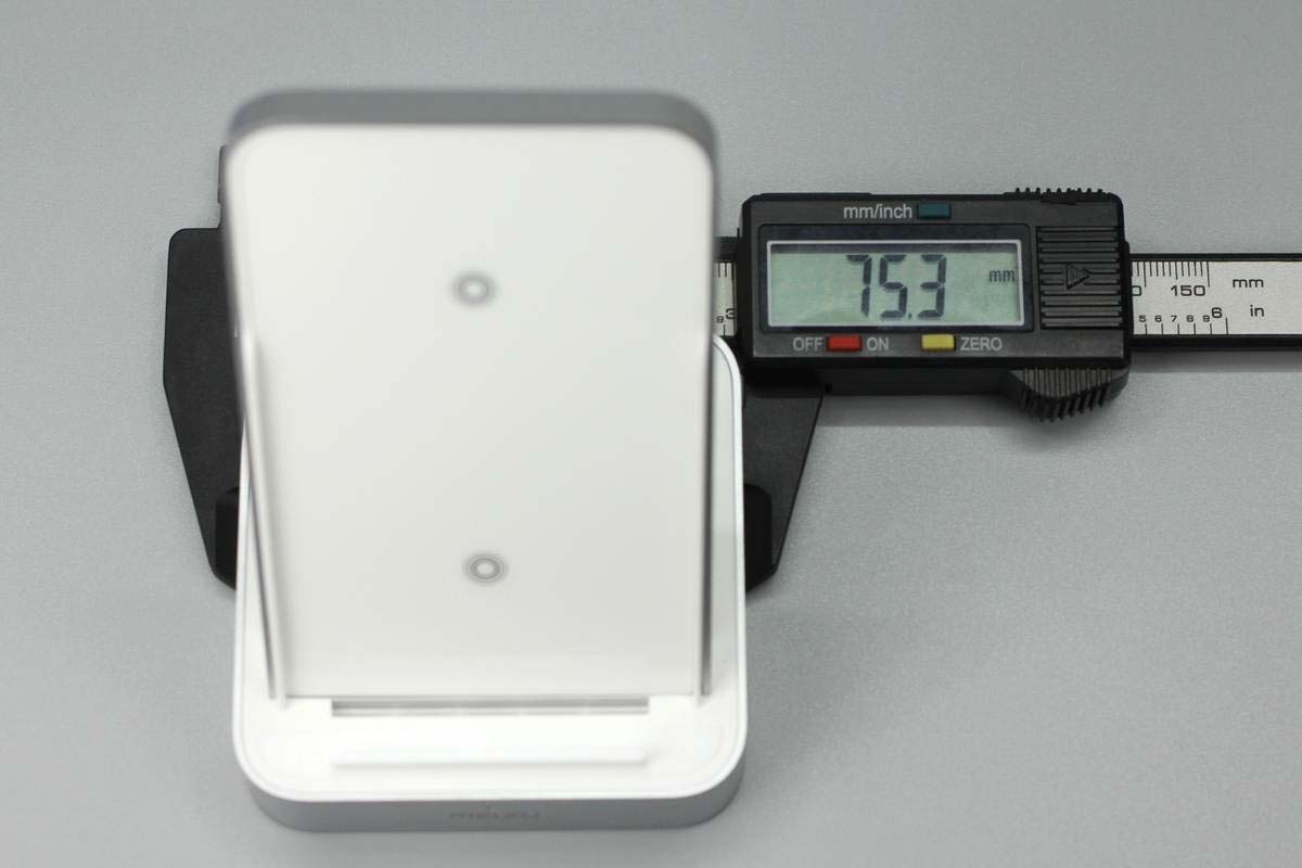 使用游标卡尺测得无线充底座长度为75.2mm。