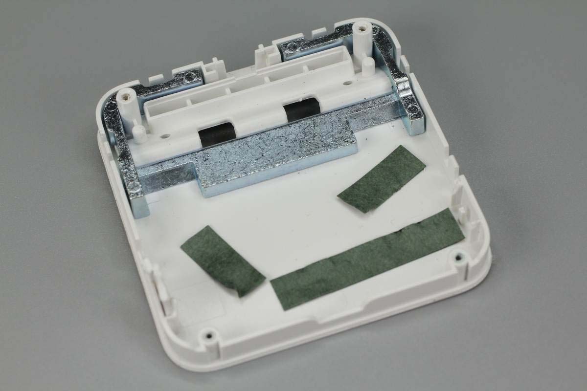 底座外壳上固定有铁块配置,此外贴有三条青稞绝缘纸。