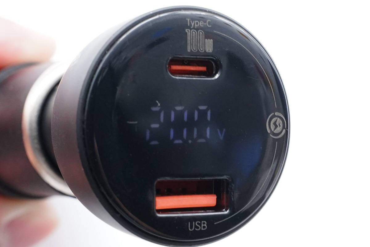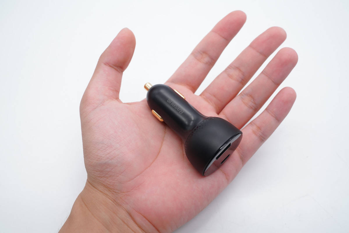 倍思100W双口快充数显车充采用PC材质塑料外壳,机身小巧圆润。车充配备1A1C万金油接口,支持QC、FCP、SCP、PD、PPS快充协议,C口还具备5-20V齐全固定电压档位以及一组5A PPS电压档位。双口同时输出A口不掉电,支持65W+30W或22.5W充电策略,可满足比如华为笔记本和手机同时快充需求,非常实用。