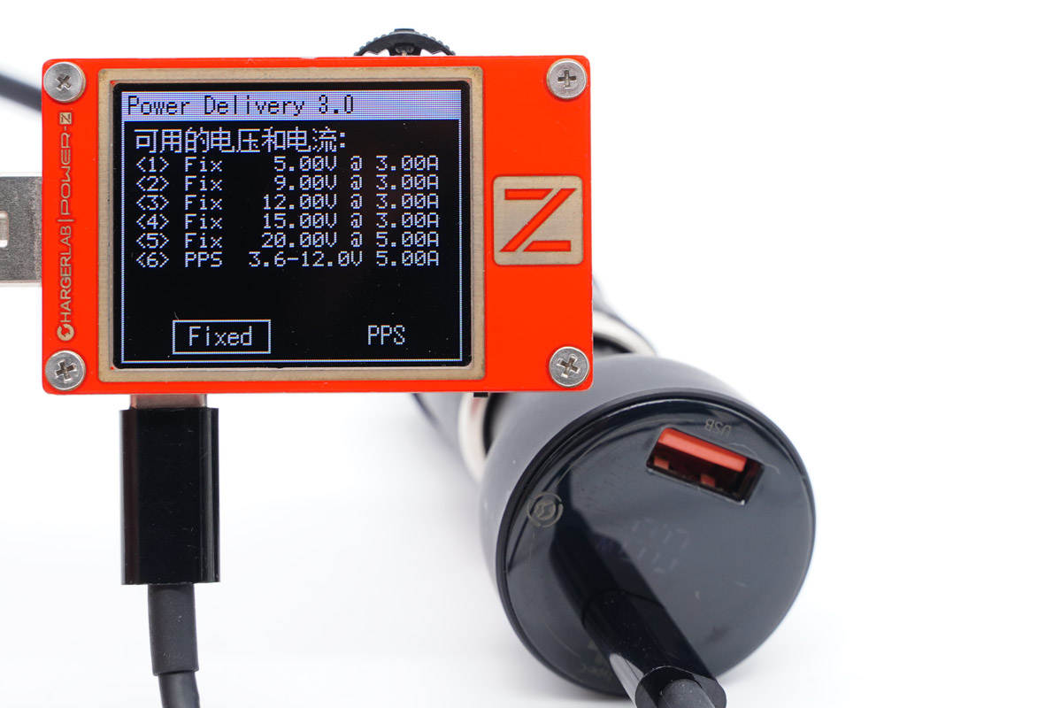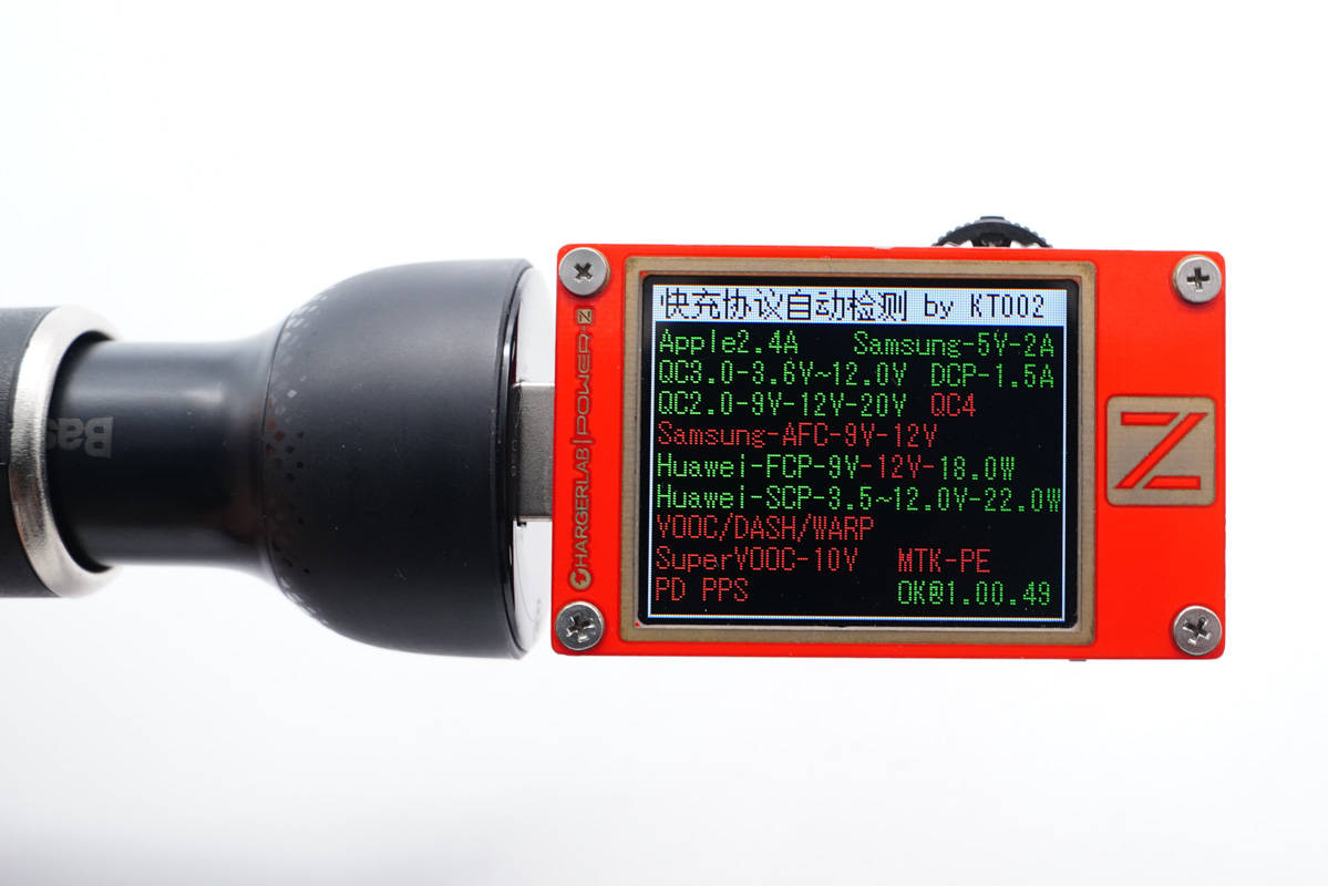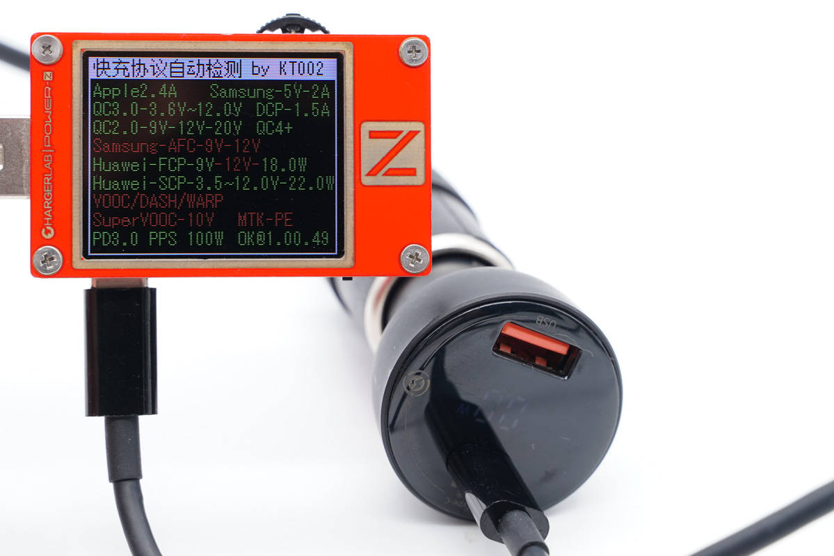 使用ChargerLAB POWER-Z KT002测得USB-A口支持Apple 2.4A、Samsung 5V2A、DCP协议,以及QC2.0/3.0、FCP、SCP快充协议。