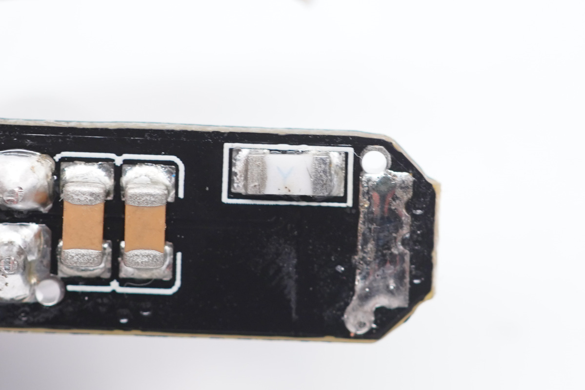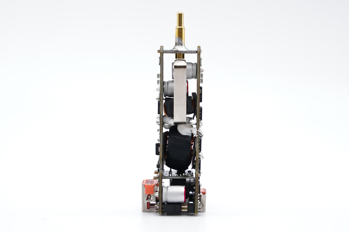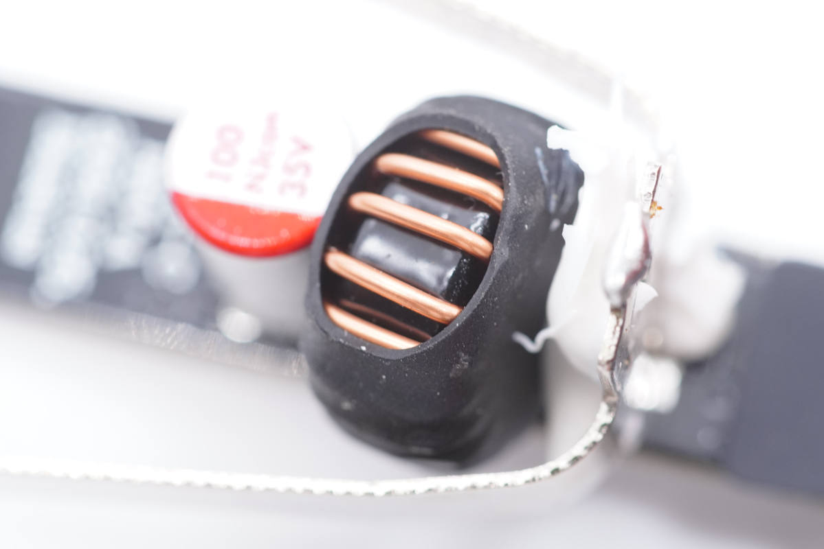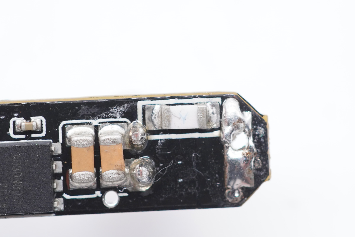 两块电路板通过输入端小板和负极金属片锡焊连接,电感外套绝缘管保护并打胶固定。