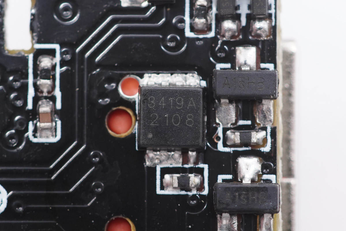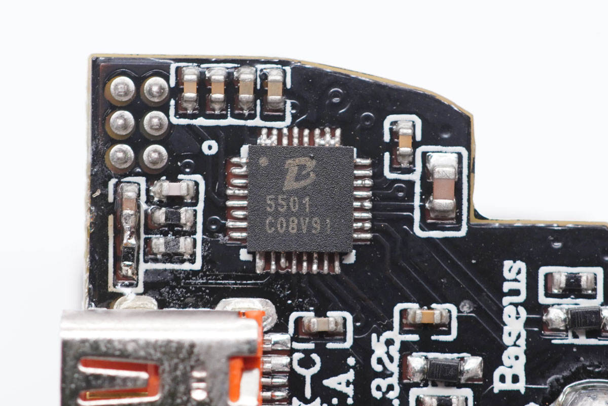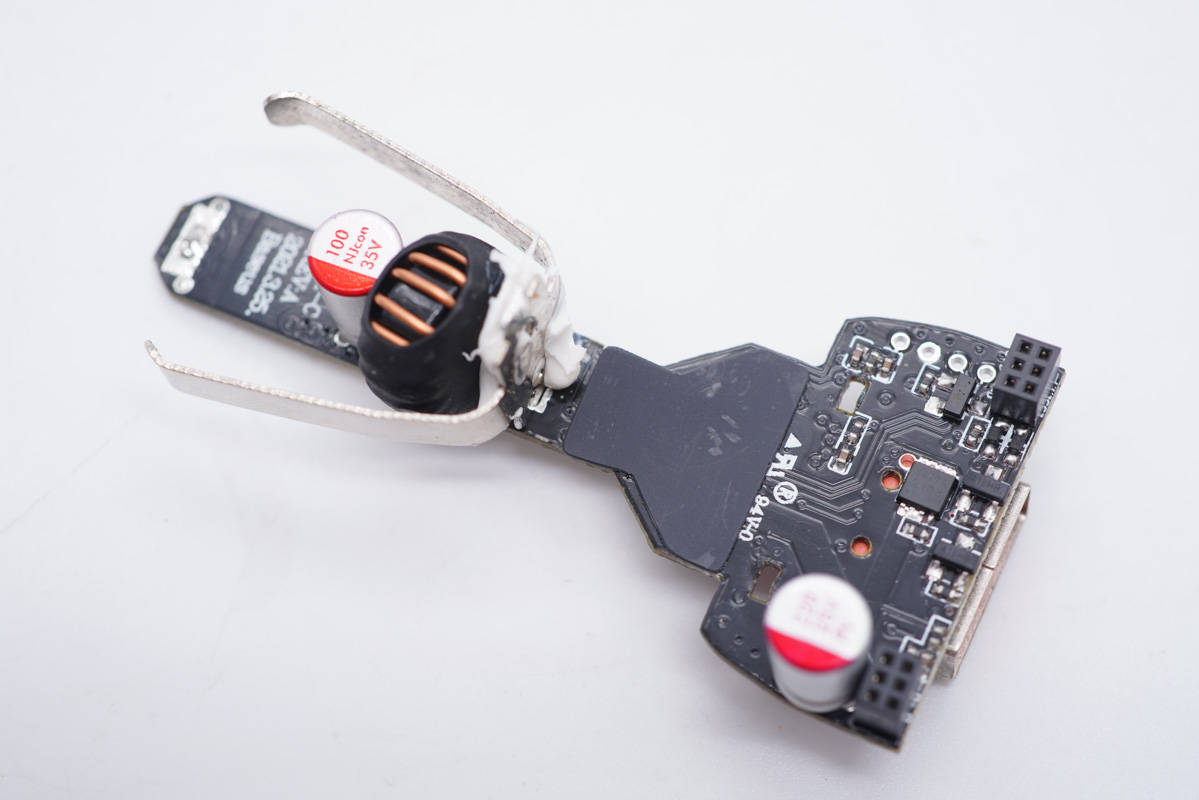 USB-A母座所在小板上设有降压转换器和协议IC。