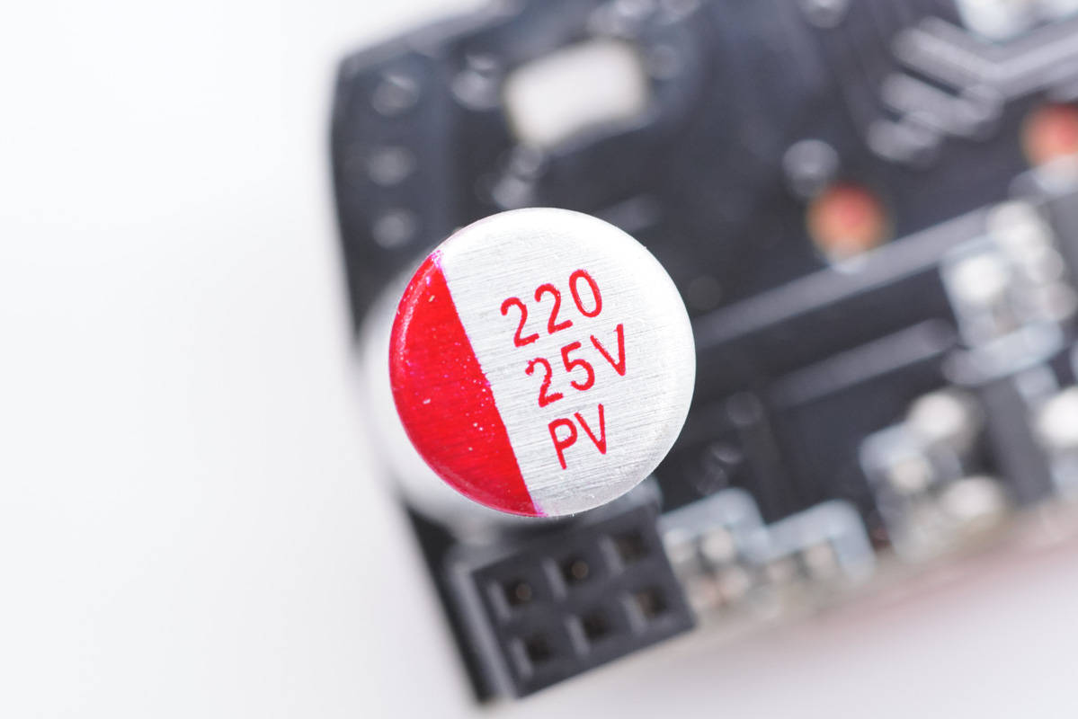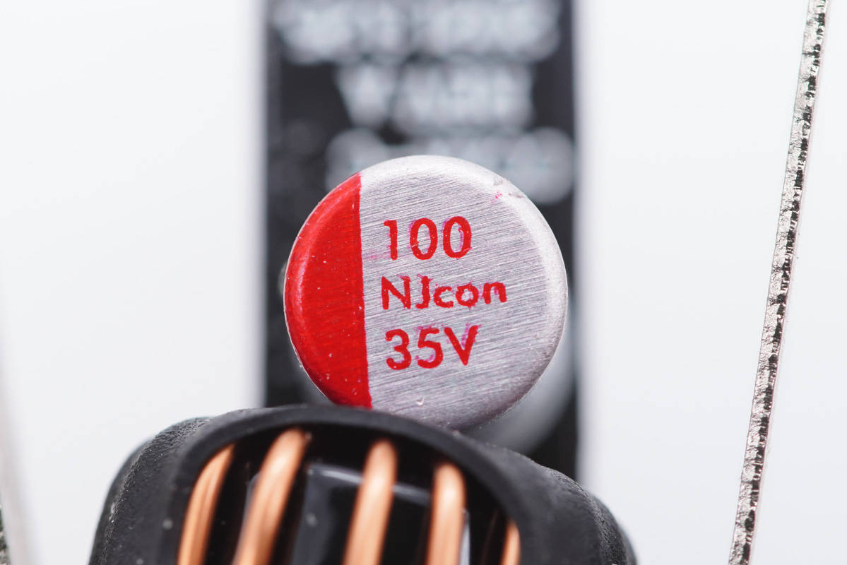 输入滤波固态电容特写,规格为35V 100μF,NJcon品牌。