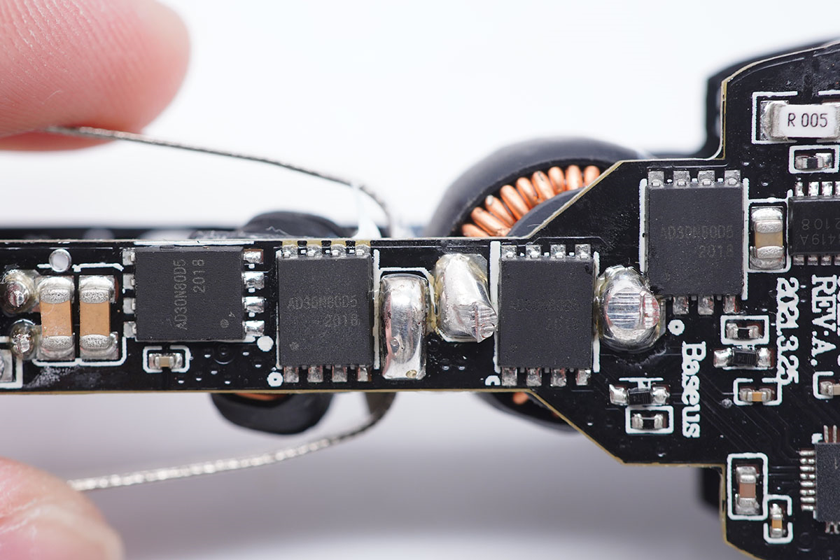 四颗MOS管均是砹德曼AD30N80D5,耐压30V,导阻2.1mΩ,HSOP8封装。
