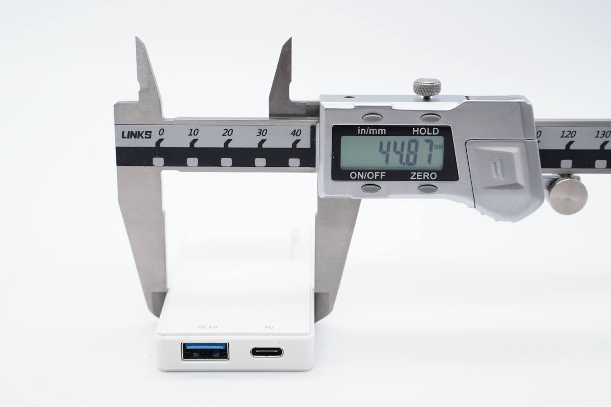 使用游标卡尺实测充电器机身长度为86.02mm。