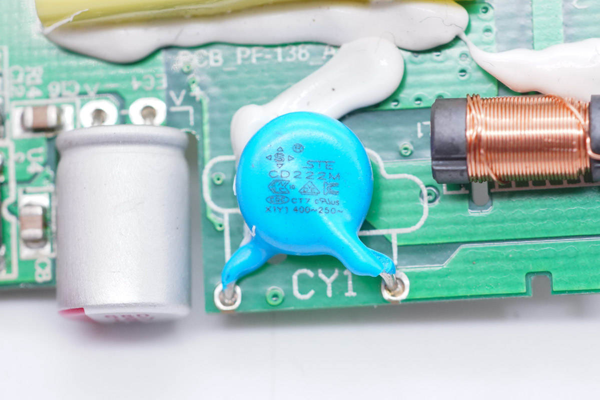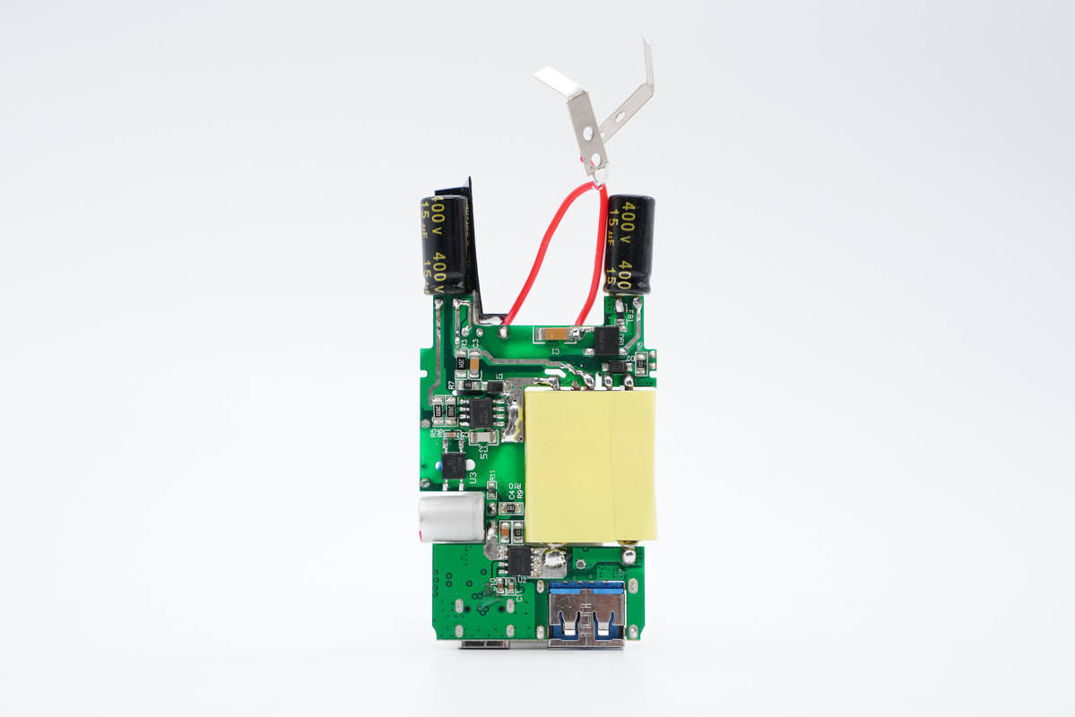 通过PCB板正背面电路观察发现,这款充电器采用开关电源宽范围输出,一颗协议芯片通过光耦控制双口输出电压的经典架构。下面我们就从输入端开始一一了解各元器件。