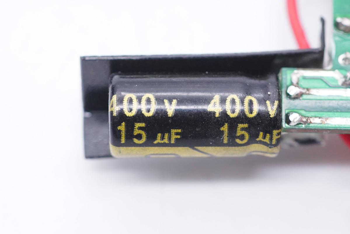 插脚使用黑色塑料板以及螺丝固定,两侧各横置一颗高压滤波电解电容,其中一颗还做了隔离处理。