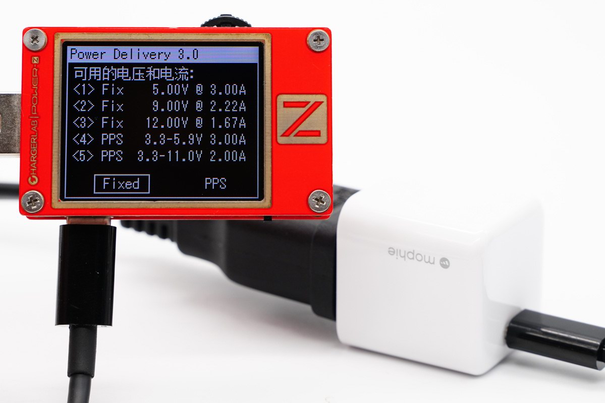 性能上,mophie 20W迷你充电器支持PD、PPS、Apple2.4A、QC2.0、QC3.0、QC4+、AFC、FCP、SCP、MTK-PE等快充协议,在协议的支持上还是非常全面的。在PD快充输出时支持5V3A、9V2.22A、12V1.67A三个固定电压档位和3.3-5.9V 3A和3.3-11V 2A两组PPS档位。